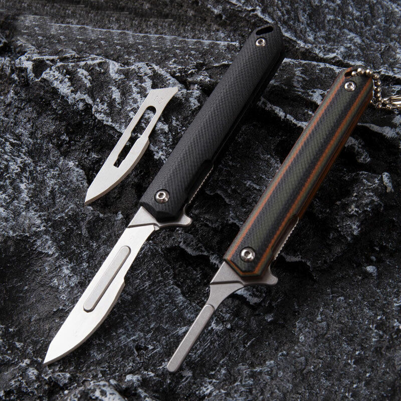 $ 6.3Mini Titanium Utility Folding Knife Scalpel Blade Pocket Keychain Outdoor EDC