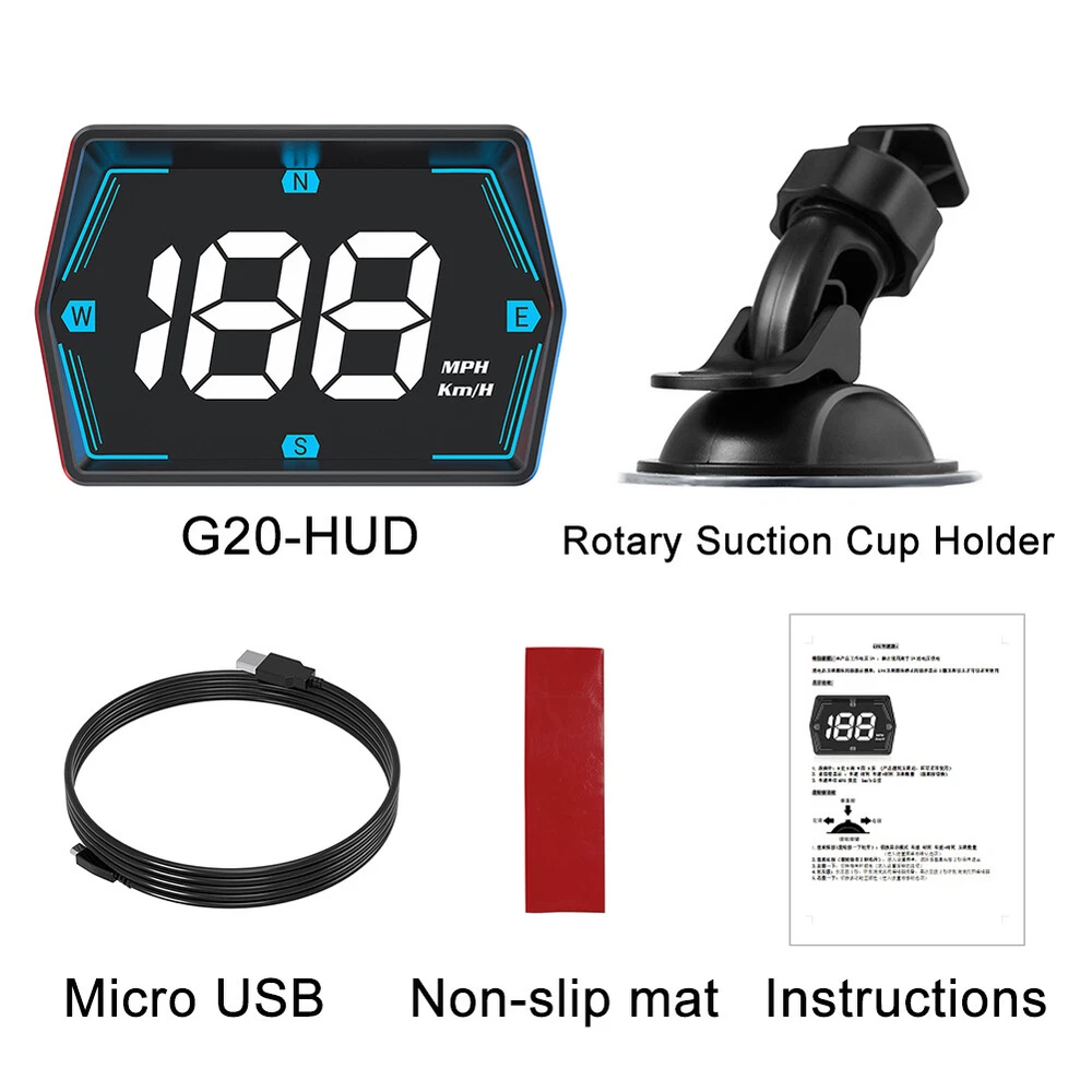 Product Description G20 HUD GPS Car Digital Speedometer Head-Up Display Overspeed Alarm For All Cars G20 HUD GPS Car Digital Speedometer Head-Up Display Overspeed Alarm For All Cars Features: 1. Designed with a small body that can fit anywhere in your car. Its compact size ensures hassle-free installation and doesn't obstruct your view while driving. 2. The head-up display is equipped with a preset maximum speed setting. When the vehicle exceeds this speed limit, the device automatically blinks to notice the driver, ensuring safety on the road. 3. You can power this gadget using your vehicle's USB (5V) or by plugging it into the car socket. This allows the device to automatically turn onoff with the car, providing a hassle-free and secure power supply. 4. This head-up display features a built-in light sensor that detects the brightness of the external environment. It automatically adjusts the display's brightness accordingly, ensuring optimal visibility in different lighting conditions. 5. This G20 HUD Head-up display is equipped with GPS technology, allowing it to accurately display the speed of any type of vehicle. Whether you're driving a car, truck, or motorcycle, this device can provide real-time speed information. 6. The high-definition GPS speedometer brings convenience and safety to drivers. It has a large 3 inch screen that directly presents the real-time digital driving speed of the car to the driver's line of sight, without the need to look down at the dashboard. In addition, this HUD is not just a speed display, head-up hud display has multiple functions including speed, compass, and speeding warnings. Specification: Condition: Brand New (Never Been Used or Installed) Material: High Quality ABS+PC Color: Black Fitment Type: Performance/Custom Placement on Vehicle: Front Voltage: USB 5V Model: G20 Fitment: Suitable for all car models, such as new energy vehicles, gas-electri hybrid vehicle, fuel car, bus, truck, etc. Please kindly check our item description, sizes and photos, make sure this item fit for your car. Packing Included: 1 Pcs HUD 1 Pcs Rotary Suction Cup Holder 1 Pcs USB 1 Pcs Non-slip mat 1 Pcs Instructions Notes: 1. No installation instruction included, professional installation is highly recommended. 2. There may be slight size deviations due to manual measurement, different measuring methods and tools. 3. The real color of the item may be slightly different from the pictures shown on website caused by many factors such as brightness of your monitor and light brightness. 4. Fitted photos just for your reference, which to show the installation effect and show you which model car can be installed, the actual product is same as the detail photos, please also check the other photos carefully. 5. When starting the G20 car's head up display for the first time, to ensure smooth reception of GPS signals, you need to patiently wait for 2-4 minutes. Please note that in order to ensure the normal operation and precise positioning of the equipment, avoid using this product in areas with weak or unstable signals. Payment Shipping Returns Contact Us Feedback 1.We accept Payoneer、PayPal、Mastercard、VISA 、AMEX etc. 2.All major credit cards are accepted through secure payment processor. 3.For faster service, please update your correct address before sending payment. 1. We ship to your eBay or Paypal address. Please make sure your eBay and Paypal address is correct before you pay. 2. Items will be shipped within 2-5 business days when we received payment.(exclusive holidays or weekends) 3. Import duties, taxes and charges are not included in the item price or shipping charges. These charges are the buyer responsibility.Please check with your country customs office to determine what these additional costs will be prior to bidding/buying. 4. Delivery time depends on destination and other factors, normally it would sooner than the ETA if it can go smoothly through customs. Our Promise : 30-Day Returns(No Reason/Just Don't Like it/Change Mind) : Unused/uninstalled items in original packaging can be returned (seller covers return shipping). Make return Easier Defective/Damaged Items : Contact us within 24 hours of delivery . We cover return shipping and offer a full refund or replacement. Do not open a return request! Wrong /Missing Items/Not as described : Provide photo evidence, and we’ll reship within 48 hours. Do not open a return request! Doesn't fit your vehicle : message us details and your car/vehicel info, will find the compatible one or refund. Do not open a return request! ⚠️ Important : Always contact us first via eBay Messages . Do not open a return request! We respond within 24 hours (weekdays). Unresolved issues without prior communication may delay resolution. Thank you for understanding! 1.For any inquires and customer support, please contact us by ebay message. 2.All emails will be responded to within 24 hours during business days.(except holidays or weekends) 3.We are always on your sides! Appreciate your kindly understanding and cooperation. Hope you have an excellent shopping experiences with our transactions. 1. If satisfied, please leave a 5-star review to support our store. Our Positive feedback will be left to you automatically after payment cleared. 2. If unsatisfied, Do not leave any feedback and contact us by ebay message to get problem solved . We’ll response within 1 working day! 3. We are 100% will to solve any problem caused by the transaction, Anytime Netrual or Negative Feedback before communication by ebay message is not acceptable! Payment 1.We accept Payoneer、PayPal、Mastercard、VISA 、AMEX etc. 2.All major credit cards are accepted through secure payment processor. 3.For faster service, please update your correct address before sending payment. Shipping 1. We ship to your eBay or Paypal address. Please make sure your eBay and Paypal address is correct before you pay. 2. Items will be shipped within 2-5 business days when we rece
