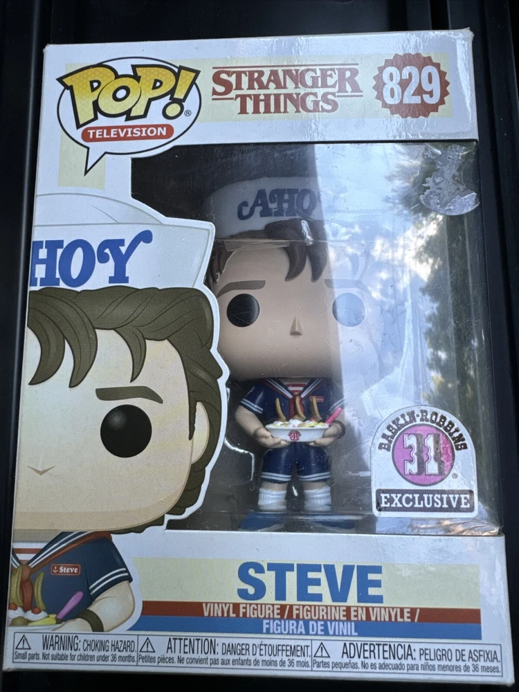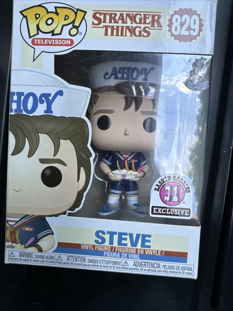 Box not best shape. Pls see photos. Introducing the G8 Funko Pop Stranger Things STEVE Baskin Robbins 31 Exclusive Vinyl Figure 829! This highly collectible figure is a must-have for any fan of the hit TV show Stranger Things. Featuring Steve Baskin, this Pop! figure is an exclusive item from Baskin-Robbins. Made from high-quality vinyl, this figure is part of the Pop! product line from Funko. It comes complete with all the features you would expect from a collectible item, including the ability to display it on your shelf or desk. Don't miss out on the chance to own this exclusive STEVE Baskin Robbins 31 Vinyl Figure 829!