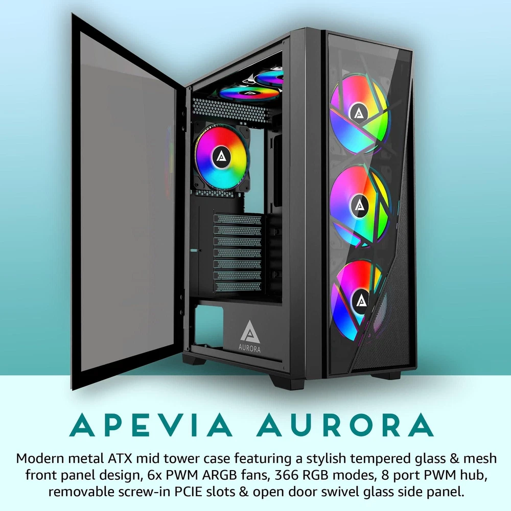 Life time toll free support 30 day money back guarantee Free shipping Product * Monitor sold separately Custom System Configuration Cases APEVIA Aurora Black Tempered Glass RGB w/ 6 Cosmos PWM Fans Intel i3/i5/i7 CPU Fans FAN FOR INTEL LGA1700 12th, 13th GEN i3/i5/i7 COPPER CORE RM1 Intel 12th ,13th & 14th Gen CPUs Intel Core i3-14100 Core i3 14th Gen Raptor Lake 3.5 GHz (4.7GHz Turbo) Intel LGA1700 (14th,13th, 12th Gen) DDR4 Motherboards MSI PRO H610M-G DDR4, Dual M.2, PCIe 4.0,USB 3.2, GB LAN DDR4 System Memory MEMORY DDR4 8GB (1x8GB) PC4-25600/3200MHz Video Cards (GPU) AMD Radeon RX 6600 8GB PCI Express 4.0 16x Quad head HDMI, 3xDisplay Port m.2 NVMe SSD Drives 512GB m.2 Solid State Drive, NVMe PCI-Express Sound Cards Realtek HD Digital Audio (Onboard) Network & WiFi Adapters Ethernet network adapter 10/100/1000 (onboard) Keyboards Black Windows Keyboard, 104 key Power Supplies ATX Thermaltake 500W ultra quiet ATX Power Supply (6+2pin)x2 Mice Optical Wheel Mouse Operating Systems Microsoft Windows 11 Home 64-Bit Edition (configured w/drivers and updates) $952.00 * This is custom PC configuration build using our system configurator tool. To insure order accuracy please review system configuration before ordering. System Configurator More info Cases APEVIA Aurora Black Tempered Glass RGB w/ 6 Cosmos PWM Fans Additional Information Date First Available February 08, 2024 More info Case Fans NONE SELECTED More info Intel i3/i5/i7 CPU Fans FAN FOR INTEL LGA1700 12th, 13th GEN i3/i5/i7 COPPER CORE RM1 Model Brand Intel Series Lamina Model RM1 Details Type Fan & Heatsinks Additional Information Date First Available February 07, 2022 More info Intel 12th ,13th & 14th Gen CPUs Intel Core i3-14100 Core i3 14th Gen Raptor Lake 3.5 GHz (4.7GHz Turbo) Model Brand Intel Processors Type Desktop Series Core i3 14th Gen Name Core i3-14100 Model BX8071514100 Details CPU Socket Type LGA 1700 Core Name Raptor Lake # of Cores 4-Core (4P+0E) # of Threads 8-Threads Operating Frequency Performance-core Base Frequency: 3.5 GHz Max Turbo Frequency Max Turbo Frequency: 4.7 GHzP-core Max Turbo Frequency: 4.7 GHz L2 Cache 5MB L3 Cache 12MB Manufacturing Tech Intel 7 64-Bit Support Yes Hyper-Threading Support Yes Memory Types DDR4 3200 / DDR5 4800 Memory Channel 2 Max Memory Size 192 GB Max Memory Bandwidth 76.8 GB/s Virtualization Technology Support Yes Integrated Graphics Intel UHD Graphics 730 Graphics Max Dynamic Frequency 1.5 GHz Scalability 1S Only PCI Express Revision 5.0 / 4.0 PCI Express Configurations Up to 1x16+4, 2x8+4 Max Number of PCI Express Lanes 20 Thermal Design Power 60W Max Turbo Power 110W Cooling Device Intel Laminar RM1 included Compatible Desktop Chipsets Intel H610 / Intel H670 / Intel B660 / Intel Q670 / Intel W680 / Intel Z690 / Intel H770 / Intel B760 / Intel Z790* BIOS update may be required when used with some old chipset motherboard Operating System Supported Linux / Windows 10 (22H2, 21H2) / Windows 11 (22H2, 21H2) Additional Information Date First Available January 08, 2024 More info Intel LGA1700 (14th,13th, 12th Gen) DDR4 Motherboards MSI PRO H610M-G DDR4, Dual M.2, PCIe 4.0,USB 3.2, GB LAN Model Brand MSI Model PRO H610M-G DDR4 Supported CPU CPU Socket Type LGA 1700* Dedicated LGA1700 mounting bracket is required. CPU Type Supports 13th / 12th Gen Intel Core, Pentium Gold, Celeron Processors Chipsets Chipset Intel H610 Onboard Video Onboard Video Chipset Supported only by CPU with integrated graphic Memory Number of Memory Slots 2x288pin (DDR4) Memory Standard DDR4 3200 Maximum Memory Supported 64GB Channel Supported Dual Channel Expansion Slots PCI Express 4.0 x16 1 x PCI Express 4.0 x16 PCI Express x1 1 x PCI Express 3.0 x1 Storage Devices SATA 6Gb/s 4 x SATA 6Gb/s M.2 1 x M.2 Gen3 x4 32 Gbps slot Onboard Audio Audio Chipset Realtek ALC897 Audio Channels 7.1 Channels Onboard LAN LAN Chipset Intel I219-V Max LAN Speed 10/100/1000Mbps Rear Panel Ports Back I/O Ports 1 x DisplayPort1 x D-Sub1 x HDMI1 x LAN (RJ45)3 x Audio Jacks1 x PS/2 Keyboard/Mouse Combo2 x USB 3.2 Gen 1 Type-A4 x USB 2.0/1.1 Physical Spec Form Factor Micro ATX LED Lighting RGB Windows Compatibility Windows 11 Supported Additional Information Date First Available March 31, 2022 More info DDR4 System Memory MEMORY DDR4 8GB (1x8GB) PC4-25600/3200MHz Model Brand n/a Series DDR4 hihg Speed Model CT2A3000C16 Details Capacity 8GB (1 x 8GB) Type 288-Pin DDR4 SDRAM Speed DDR4 3200 (PC4 25600) CAS Latency 16 Timing 16-18-18-35 Voltage 1.2V ECC No Buffered/Registered Unbuffered Color Black Heat Spreader optional( not included) Features Designed for high-performance overclocking Each module with eight-layer PCB helps manage heat and provides superior overclocking headroom. Each IC is individually screened for performance potential. Designed for great looks Available in multiple colors to match your motherboard, your components, or just your style. Performance and Compatibility RAM is optimized and compatibility tested for the latest Intel and AMD Series motherboards and offers higher frequencies, greater bandwidth, and lower power consumption. XMP 2.0 support for trouble-free automatic overclocking. Low-profile design The RAM module height is carefully designed to fit smaller spaces. Recommend Use High Performance or Gaming Memory Fan Included No More info Video Cards (GPU) AMD Radeon RX 6600 8GB PCI Express 4.0 16x Quad head HDMI, 3xDisplay Port Model Brand PowerColo Series Hellhound Model AXRX 6600 8GBD6-3DHL Interface Interface PCI Express 4.0 Chipset Chipset Manufacturer AMD GPU Series AMD Radeon RX 6000 Series GPU Radeon RX 6600 Architechture RDNA 2 Game Clock 2044 MHz Boost Clock 2491 MHz Stream Processors 1792 Stream Processors Memory Effective Memory Clock 14 Gbps Memory Size 8GB Memory Interface 128-Bit Memory Type GDDR6 3D API DirectX DirectX 12 Ultimate OpenGL OpenGL 4.6 Ports Multi-Monitor Support 4 HDMI 1 x HDMI 2.1 DisplayPort 3 x DisplayPort 1.4 Details Max Resolution 7680 x 4320 Virtual Reality Ready Yes Co