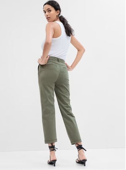 NEW WITH TAGS ~ GAP High Rise Girlfriend Khakis with Washwell RETAIL PRICE $59.99!! Size: 0/25 PETITE Color: Vintage Navy (Washed Navy Blue) Product Details: This pair of pants is part of our water-saving Washwell program. Compared to conventional wash methods, Washwell has saved millions of liters of water since 2016. Stretch twill weave. Button closure, zip fly. Front slant pockets, welt pockets at back. #819959 Fit & Sizing: High waisted. Easy through the hip and thigh. Hits above the ankle. Inseam: 25" Fabric & Care: Cotton 97%, Spandex 3% Machine wash cold. Tumble dry low. Imported.