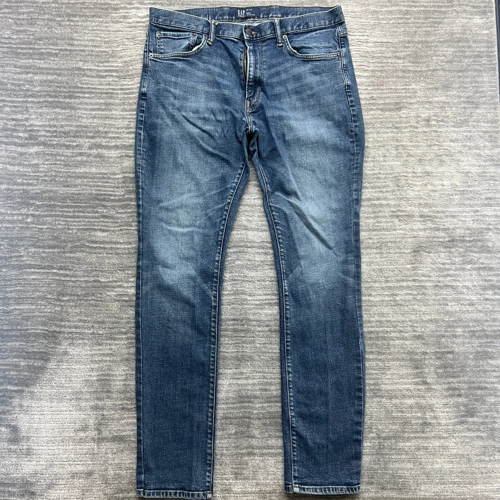 GAP Jeans Size 36x34 Mens Slim Medium Wash Blue Denim Please View Photos Closely. Please note, item measurements are approximate and in the photos. Items are carefully inspected and sealed after photos, so we cannot check additional measurements or details for you. All clothing has been cleaned/washed per eBay standards. We store our items in a pet and smoke free environment. We ship daily, and have 30 day returns. Thank you!