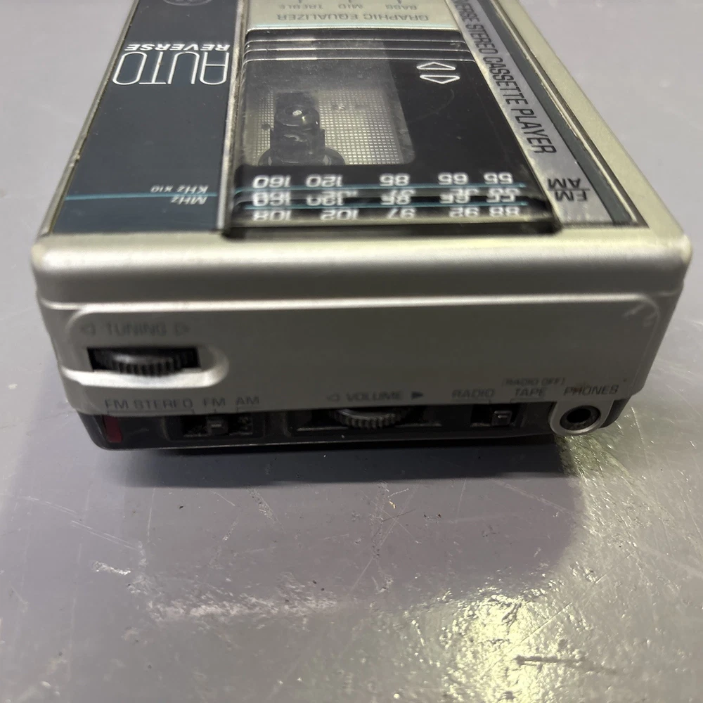 The GE 3-5477A General Electric Auto Reverse AM FM Cassette Walkman is a portable audio device that combines the functionality of a radio and cassette player in one sleek design. Featuring a headphone jack for easy listening on-the-go, this Walkman model is perfect for enjoying your favorite music on cassette tapes with the convenience of automatic reel-to-reel playback. The GE brand ensures quality and reliability, making this product a great choice for anyone looking for a compact and versatile personal cassette player.