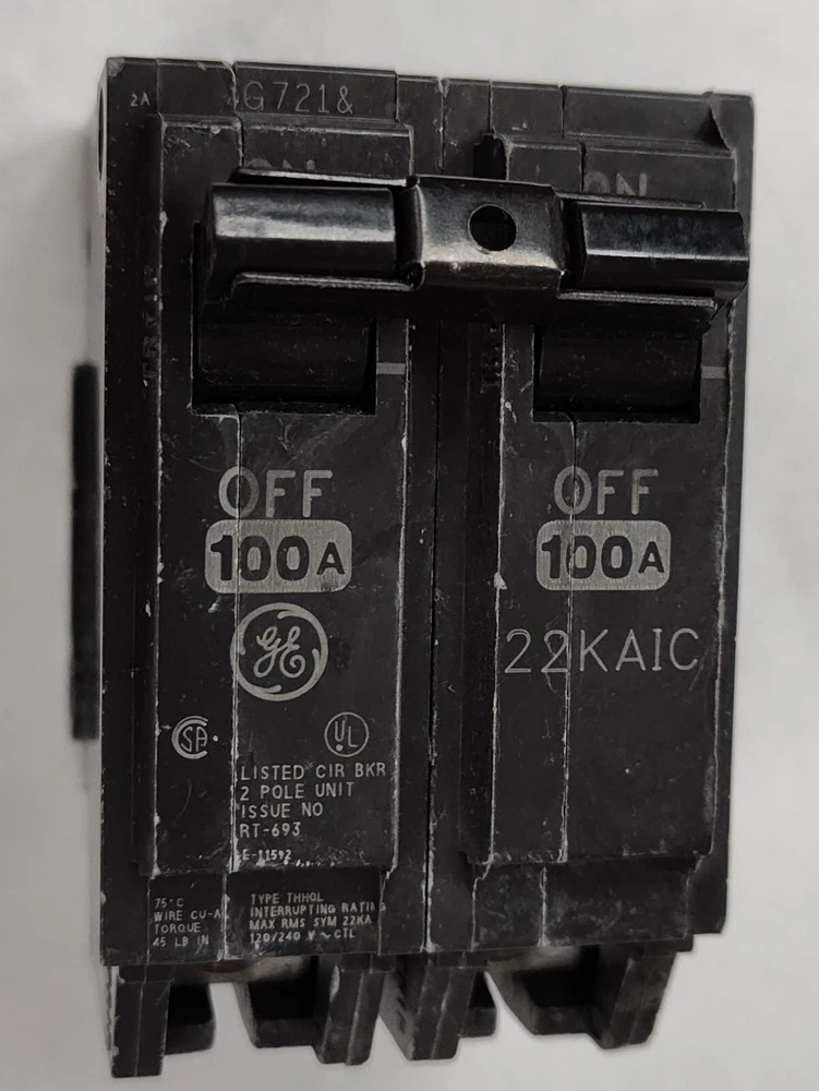 This is a premium quality GE THQL21100 circuit breaker. New old stock item. This plug-in/on thermal circuit breaker is designed to provide thermal protection and is suitable for electrical wiring applications. It has a maximum amperage of 100A and a voltage range of 201-250V. May be shipped out of retail packaging. The black GE circuit breaker has a current rating of 91-100A and is compatible with AC current type. It features an analog/mechanical control style and has 2 poles. Made in USA.
