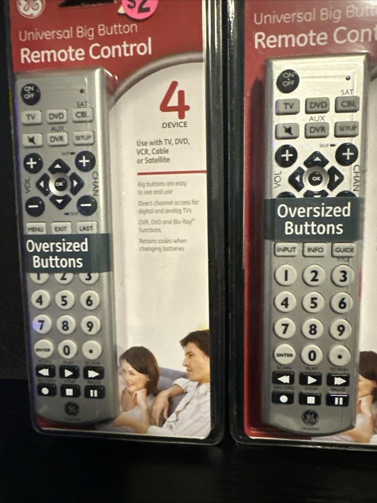 GE Universal Big Button Remote Control for 4 Devices with AAA Batteries, Lot of 2