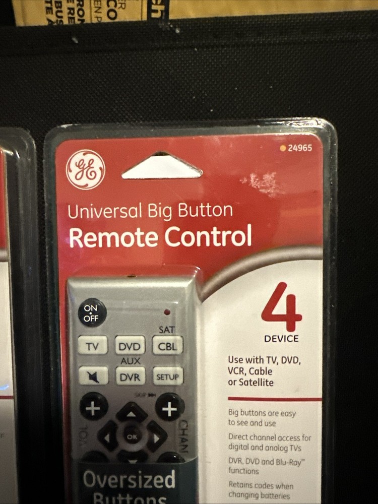 MPN: 24965 Color: Silver Type: Remote Control Model: 24965-V4 Brand: GE Compatible Model: Universal gtin13: 030878249652 Country/Region of Manufacture: China UPC: 030878249652 Compatible Brand: Multi-Brand