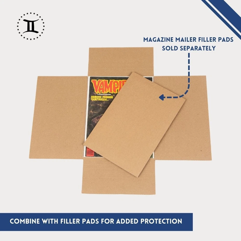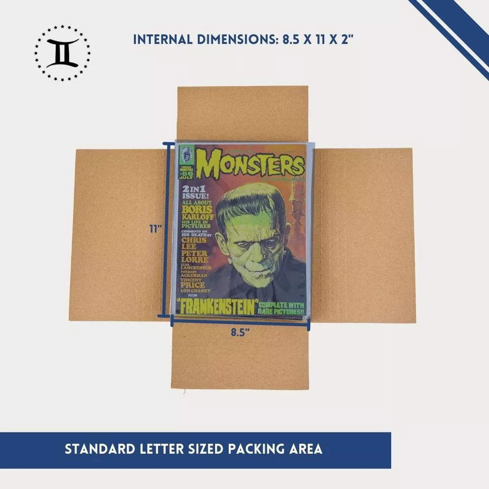 Feedback Add to Favorite Seller Join Mailing List CATEGORIES Contact Us Fast Delivery on all Orders 30 DAYS Return or Exchange Safe And Secure Payments Product information GEMINI Magazine Mailers - (Ships Large format Art Books & graphic novels ) Product Details: Easy-fold design secures and protects comics, magazines, and a variety of printed media. Lightweight, high-quality material resistant to impact from rough handling during transit. Holds up to 20 bagged & boarded comic books (with modifications) Holds up to 6 standard sized magazines Holds up to 400 pages of printed media Product Dimensions: Internal Dimensions - 11-1/8" x 8-5/8" x (up to 2") Scored for multiple depths at 1/2" increments Product Weight - 4 ounces Description The Magazine Mailer is a versatile shipping product designed for larger comic shipments, magazines, graphic novels and other printed materials. It features one piece constructions from high quality corrugated material to withstand rough handling during shipment. The easy-fold assembly allows for quick packing up to 20 bagged and boarded comic books (with void fill), 12 standard magazines, and a other printed materials. Each mailer is scored at half inch depth increments up to 2 inches to allow for a tight, secure package. Delivery Gemini Comic Supply strives to ship all orders within one business day. We currently ship via Ground services from one of our shipping centers throughout the continental United States and Canada; reducing transit times and shipping costs. Please be sure to purchase from the listing with the appropriate shipping location to ensure the best pricing available. Returns Returns are excepted on all of our products; however, due to the high cost of shipping, we encourage buyers to contact us with questions before purchase. About Us Gemini Comic Supply is a family-owned and operated business committed to serving the comic book retail industry by providing high quality, innovative shipping and storage supplies. Our products are designed to promote time and cost efficiency while supporting customer satisfaction through the secure shipment and storage of comic books and collectible media. We are dedicated to continuously improve our product selection to meet of needs of the comic collecting community. Join Our Exclusive Newsletter For Up To Date News, Special Offers And New Arrivals Sign up Now Shop Categories Quick Links Feedback Add to Favorite Seller Shop info Contact Us Get in touch with uS Payment info Copyright 2022 All Rights Reserved