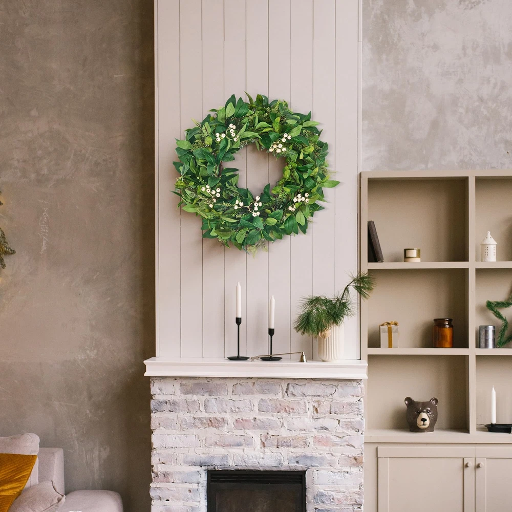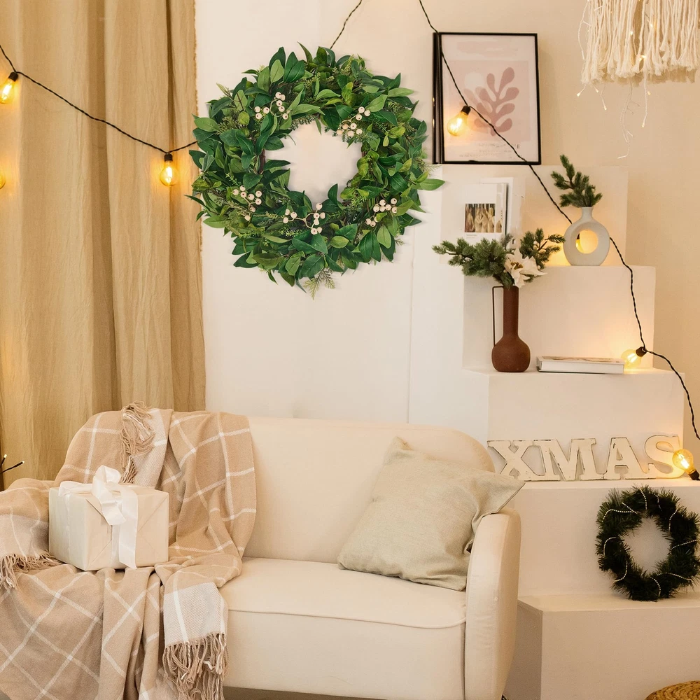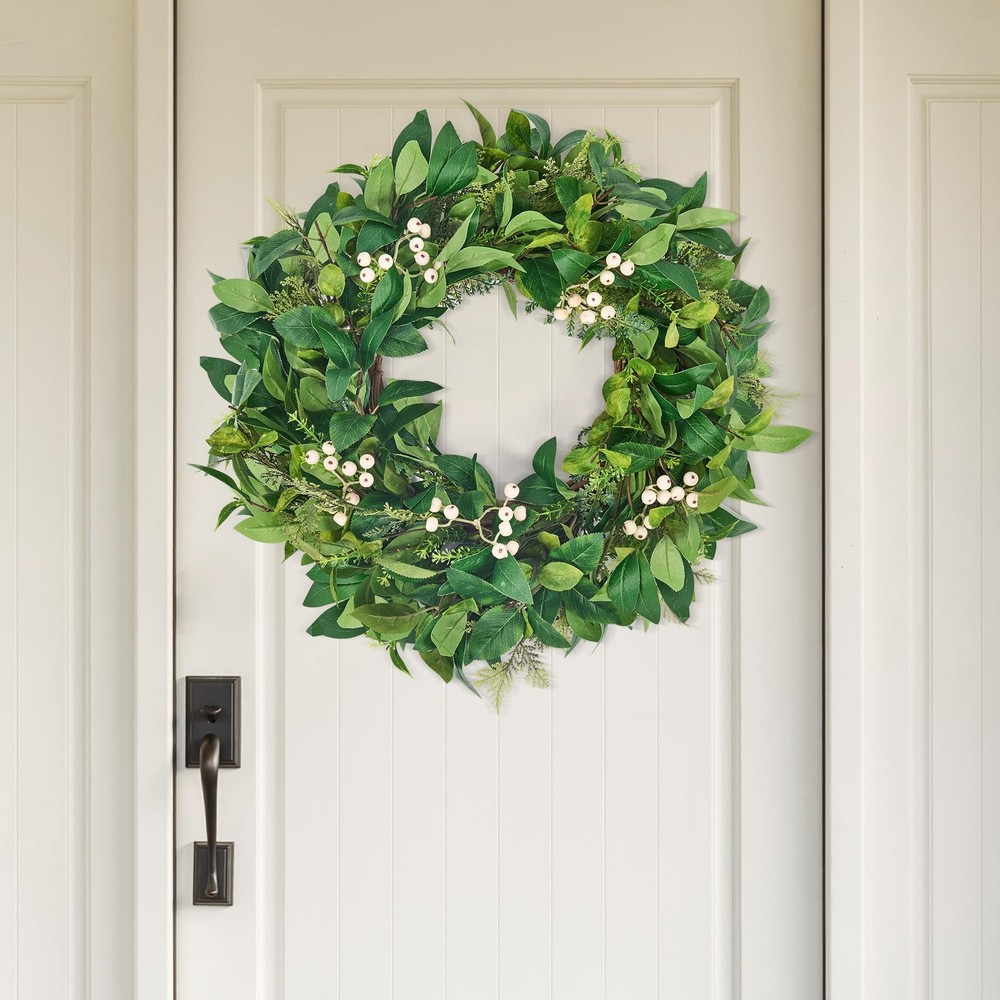 Spring Cedar Cypress leaves wreath is perfect for decorating front doors, indoor entrances, windows, fireplaces, and even farmhouse spaces. It adds a decorative touch not only to fall celebrations, weddings, Easter, and Thanksgiving but also throughout the year, creating a delightful ambiance for your space! 【Unique Design & Lifelike Appearance】: This green wreath features a mix of over four types of elements Cedar, Laurel, cypress leaves, and white berries. The silk cypress leaves and foam berries provide a vibrant, natural look that never fades or falls apart, making it a perfect year-round decoration. 【Sturdy & Durable Construction】: The spring wreath is crafted with a natural vine base, allowing for easy attachment of additional decorations. It is designed to be both large and durable, with a premium finish that enhances its realistic floral design. The sturdy construction ensures it can withstand everyday use and seasonal changes. 【Versatile All-Year-Round Use】: Suitable for all seasons and occasions, this door wreath can be hung on your front door to welcome guests, above the fireplace, or on a living room wall. It can also be used as a wedding wreath, welcome wreath, spring wreath, and more. Additionally, it makes a great gift for weddings, housewarming parties, Mother's Day, birthdays, and other holidays. - **Front Door Welcome**: Impress guests with a lush green greeting. - **Indoor & Farmhouse Charm**: Adorn walls, windows, mantels, or rustic kitchens. - **Outdoor Oasis **: Spruce up porches, patios, or garden gates. 【Low Maintenance & Easy to Customize】: The silk cypress leaves and foam berries require no maintenance and will stay fresh-looking every day. The white berry wreath is designed with a vine base instead of plastic, making it easy to add other decorations like maple leaves in autumn or bells at Christmas. You can customize it to create a unique piece that suits your personal style. 【Shipping & Quality 】: The wreath is carefully packaged to prevent damage during shipping. It may appear smaller when first taken out of the box, but following the fluffing instructions will restore its full size and beauty. As a handmade product, slight size variations may occur. If you have any issues with the product, please immediately, and we will provide a satisfactory solution.