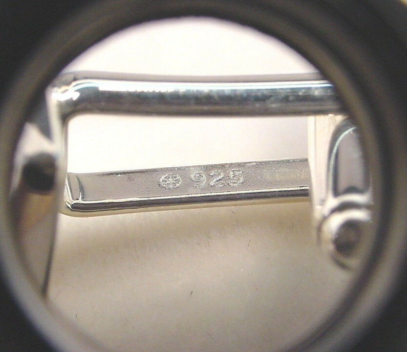 Solid Sterling Silver...marked as shown in photos with the 925 Silver content hallmark and a maker symbol hallmark Genuine Natural Black Onyx Gemstone Spring loaded flip lever closure mechanism Please ask any questions.... We'll try our best to answer promptly...