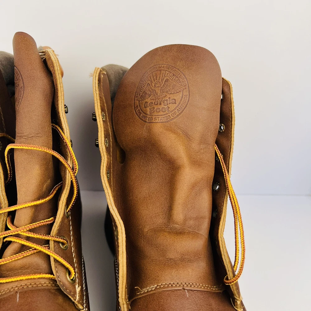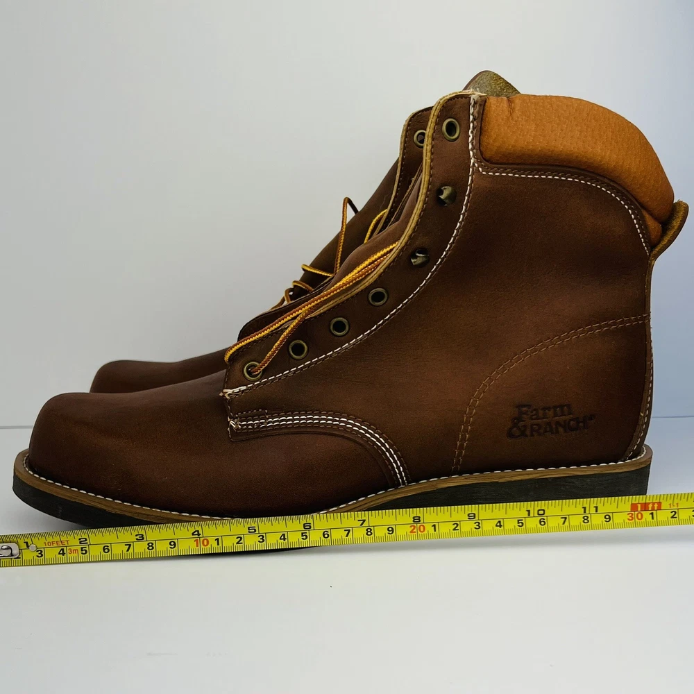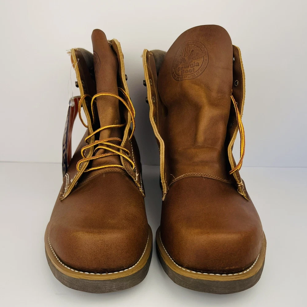 These Georgia Boot Company Farm & Ranch boots are made of leather. With a solid pattern and briar brown color, they feature a round toe and lace-up closure for a secure fit. The shoe and upper material are both made of leather, ensuring durability and waterproofing. Comes in size 12W shoe width. They are designed for work and safety, with a farm theme. Shipping is calculated by eBay based on weight and size of package, which sometimes seems high, even to the seller. Therefore, sellers shipping discount is shared with the buyer making it as low as possible. We use recycled shipping supplies, when possible. Due to new USPS policies, your item may take longer than USPS/eBay promises. Orders will be processed within stated time by seller. Security measures are taken to protect seller from fraudulent activity.