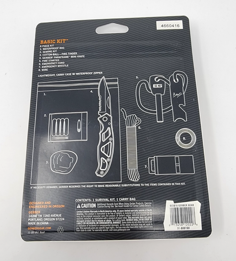 GERBER BEAR GRYLLS BASIC KIT 31000700 8 Piece Survival Mini Knife Fire Starter.. Condition is New. See pictures for condition. Fast Shipping. Shipped with USPS Ground Advantage or equivalent