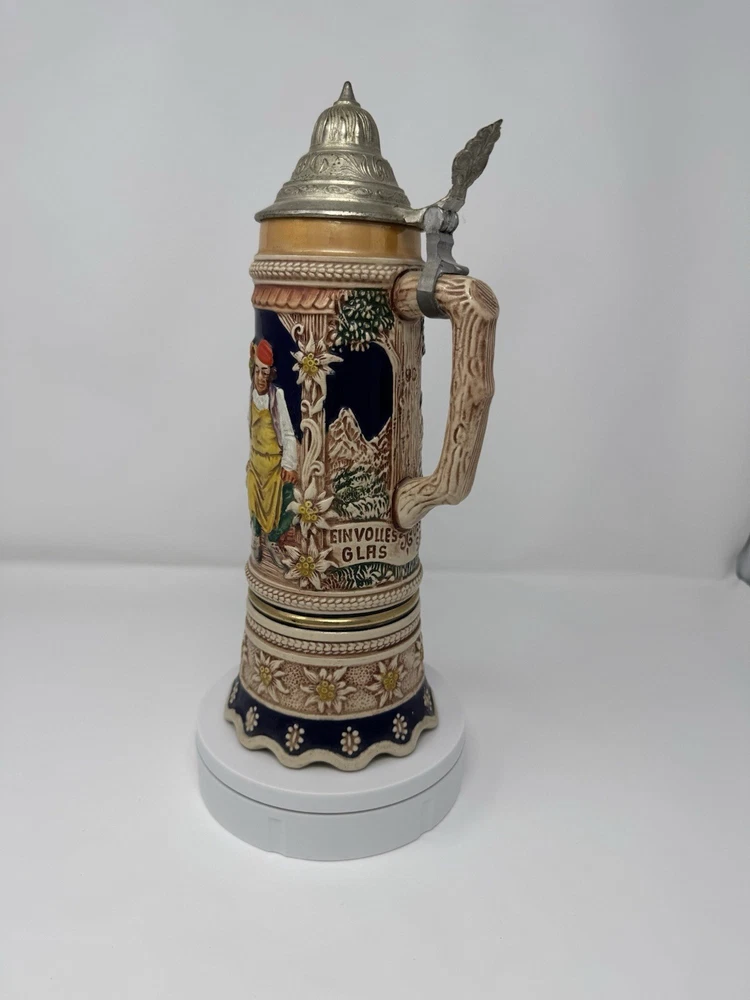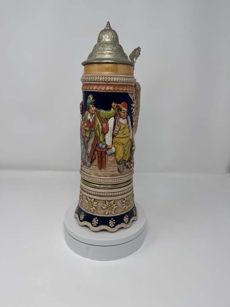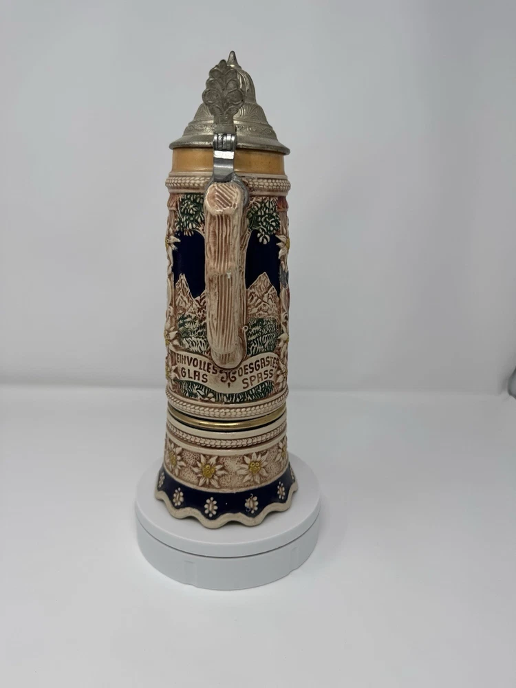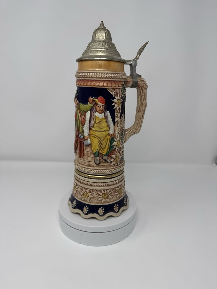 This German beer mug is a perfect addition to your collection. Featuring a musical movement, this mug is a great conversation starter. Made by Mapsa, this mug is designed with a lid to keep your beer fresh and delicious. The multicolor design of this mug makes it a great choice for those who love unique and eye-catching pieces. Its theme of music adds a touch of creativity and fun to your drinking experience. Whether you're a collector or just looking for a great beer mug to enjoy your favorite brew, this is the perfect choice for you.