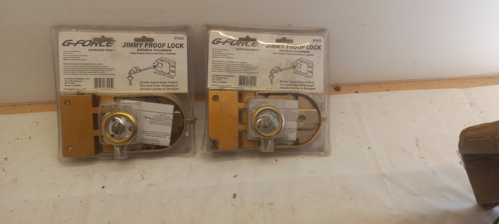 This is a set of 2 G-force Jimmy Proof Locks, specifically designed as double cylinder locks. These locks are from the brand G-force, known for their quality and durability in the market. Ideal for home improvement projects, these door locks provide added security and protection for your home with their double cylinder design. One lock have a corner broken see pictures for details