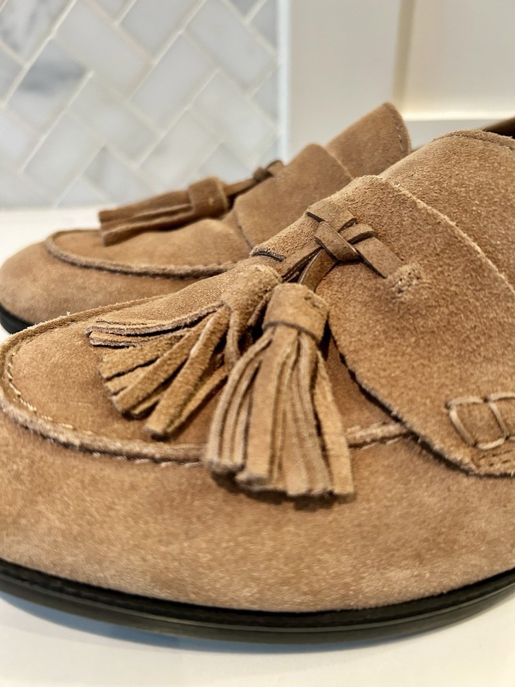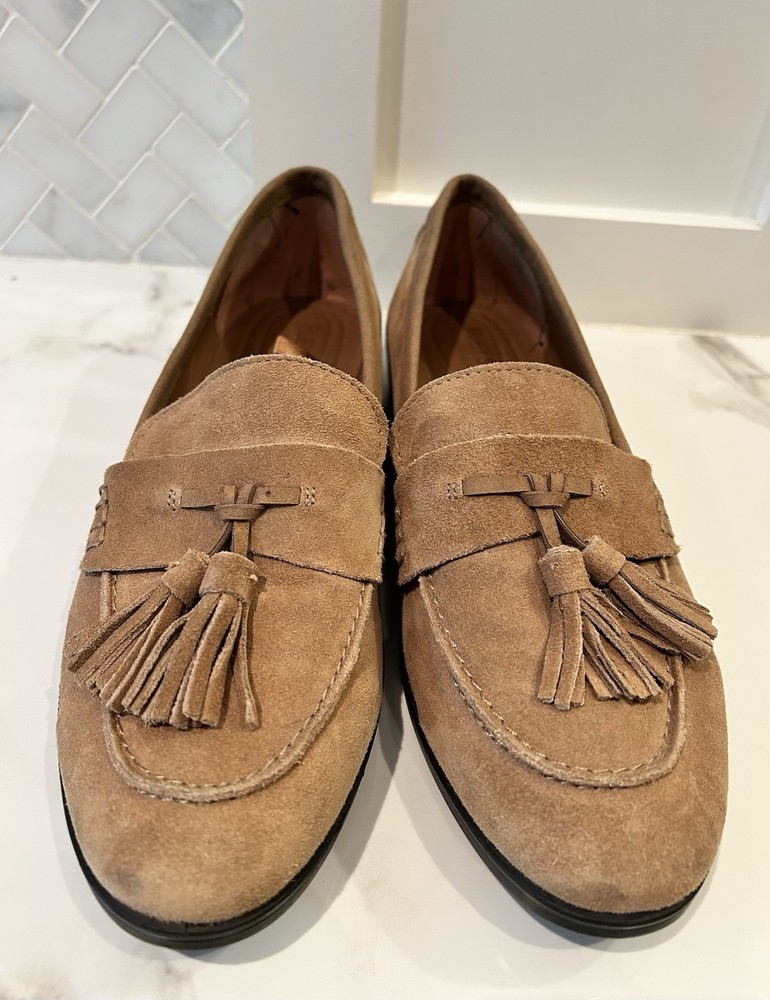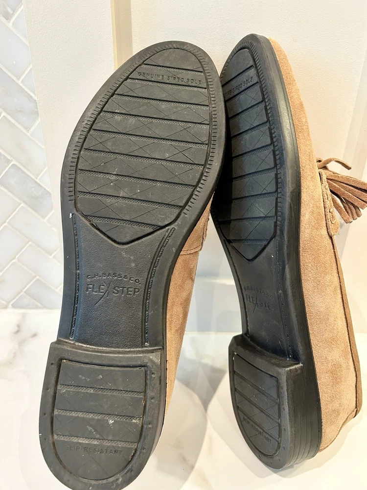 Classic preppy style, modern comfort! Genuine leather (suede) loafers with tassle detail. GH Bass "Noelle" Ladies size 8.5 Tan brown Excellent condition - these were barely worn Reg Price approx $175 cdn