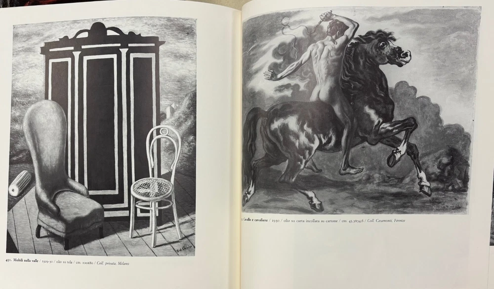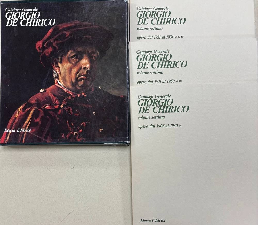 GIORGIO DE CHIRICO: Catalogo Generale - 3 vol. set in slipcase. Electa Editrice 3 volume set chronicling the works of Giorgio de Chirico, considered one of the masters of 20th century art. The 3 volumes are almost entirely photos of his works, with the only text being the captions (in Italian) accompanying each photo. The 3 volumes are: 1. Works from 1908-1930 2. Works from 1931-1950 3. Works from 1951-1974 10" x 11" x 1" We are happy to provide additional photos and information upon request. See our other listings in store PBSales. We will discount shipping of multiple items in a single package when possible. Please ask for a combined invoice before paying for your items. 100% of the proceeds from this purchase directly fund the operations of public / not-for-profit library in Connecticut.