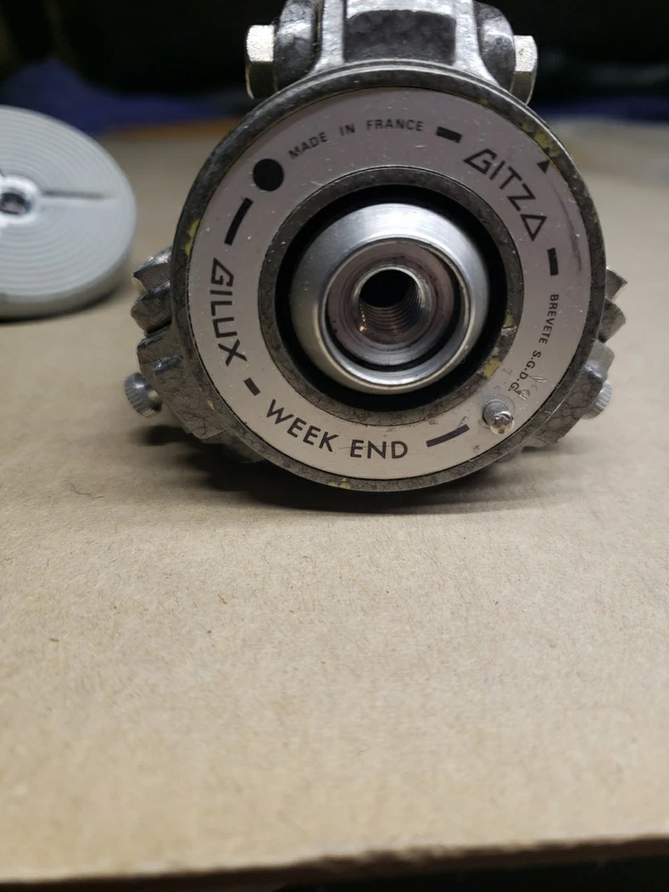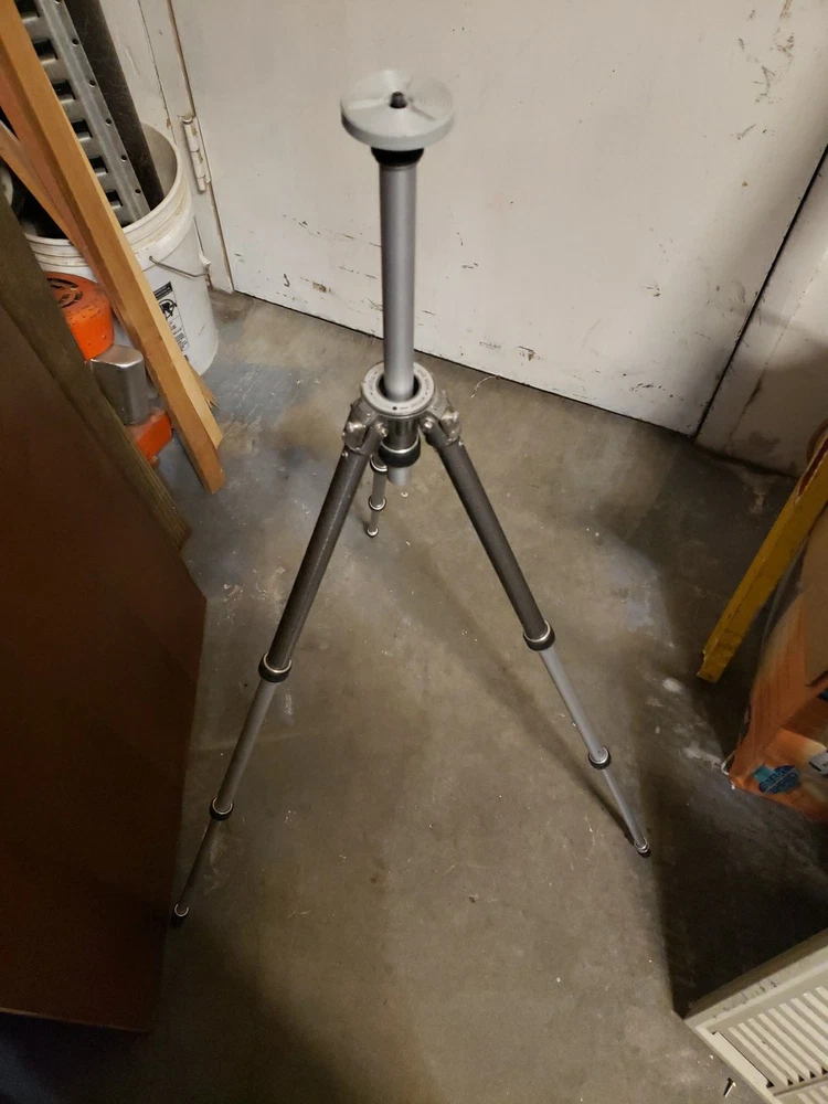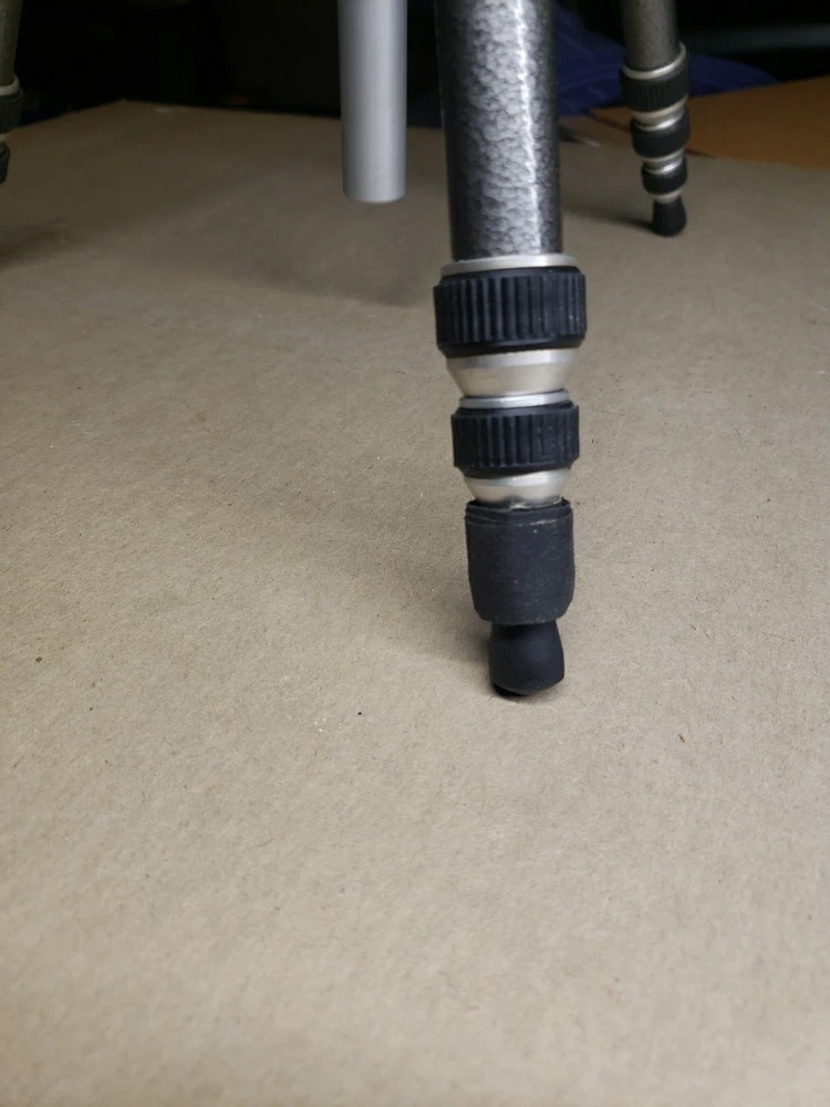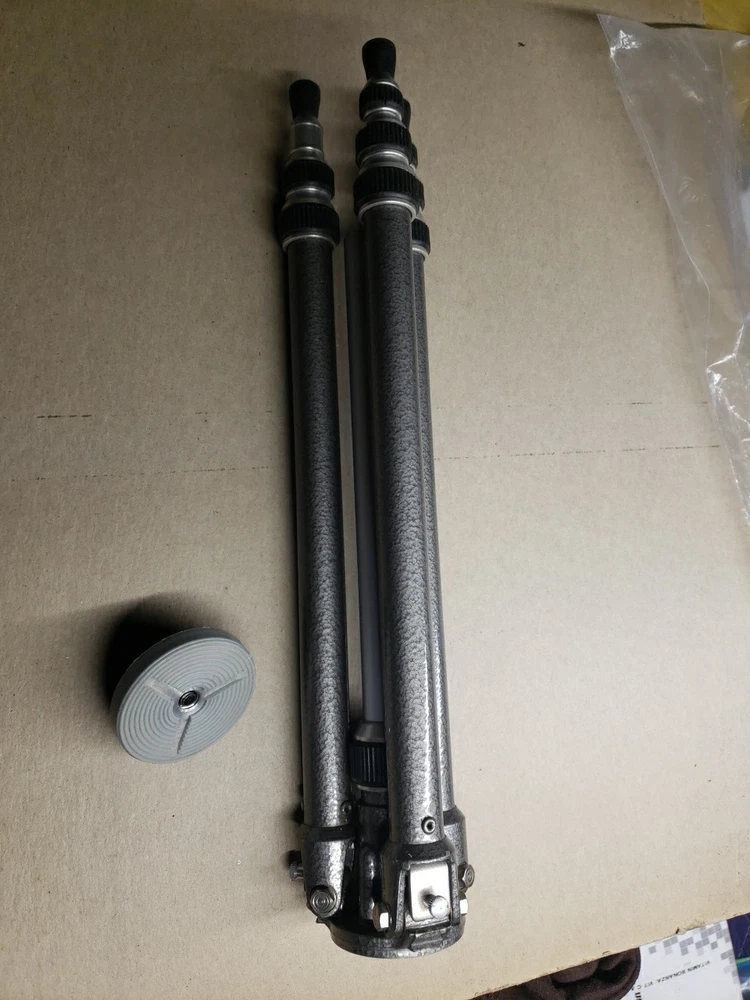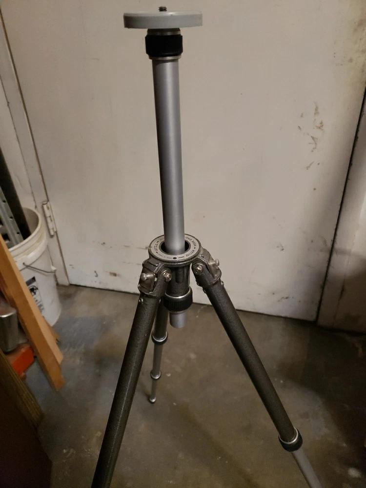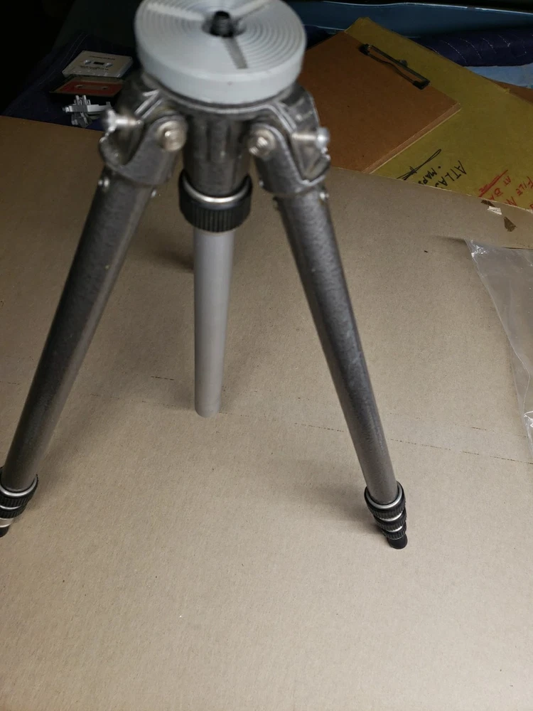 Made in France by Gitzo, this is the Gilux Weekend aluminum tripod. Can be used in heights from 14" to 57" max. Compact , high quality. One of the rubber nut covers is missing and has been replaced with a friction wrap. Has floor protecting rubber feet. Overall very good condition.