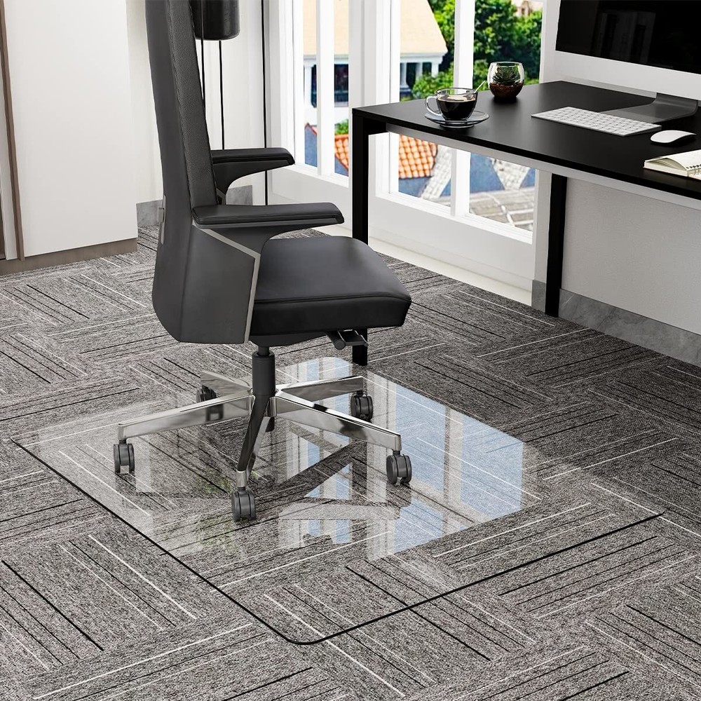 GLSLAND Office Chair Mat for Carpet - 36" x 46" Tempered Glass Floor Mat - for Office Chair on Carpet - 1/6" Thick Clear Computer Floor Mat with 4 Anti-Slip Pads Durable Carpet Protection Mat: Manufactured from 100% pure tempered glass, durable and transparent. Under standard use will not crack, curl, break, scratch or discolor Highly Transparent: The full transparent floor chair mat allows the beauty of your floor can be clearly seen. Smooth surface, easy to clean food residue, crayon marks. You can use it in the office, dining table, children's graffiti, and other scenes, keep your floor clean and smooth Round Edge Design : The four corners of the glass mats are polished to make smooth rounded corners, could protect you and your family far from harm. And this chair mat has no odor, no harm to human health. Rest assured this is a safe option for your home or office Effortless Rolling & Anti Skid: Designed with 4 anti-slip pads for prevents the pad from moving with the chair without affecting the chair's movement on the mat. The strong grip also ensures safety when walking on it. The mat weighs is 27 pounds, 0.2 inches thick, which can withstand 1200lb of pressure This is a durable product, but if the mat is shattered by external force accidentally, please stop using it immediately to avoid injury Shipping We offer FREE shipping on all orders! We ship within Three business days of payment, usually sooner. We use a selection of shipping services such as UPS, FedEx, USPS etc. We only ship to the lower 48 states, no APO/FPO addresses or PO Boxes allowed. Local pickups and combined shipping options are not provided at this time. Return You can return a product for up to 30 days from the date you purchased it. Any product you return must be in the same condition you received it and in the original packaging. Please keep the receipt. Feedback Customer satisfaction is very important to us. If you have any problem with your order, please contact us and we will do our best to make you satisfied. Contact Us If you have any queries, please contact us via ebay. We usually respond within 24 hours on weekdays. Please visit our eBay store to check out other items for sale! Thank you for shopping at our store. Please pay as soon as possible after winning an auction, as that will allow us to post your item to you sooner!