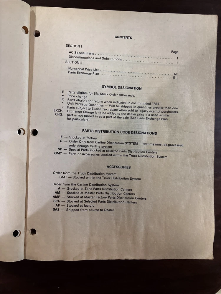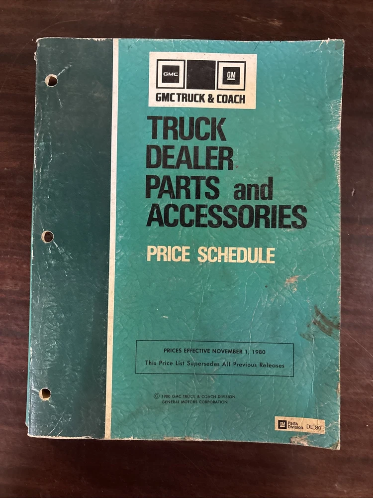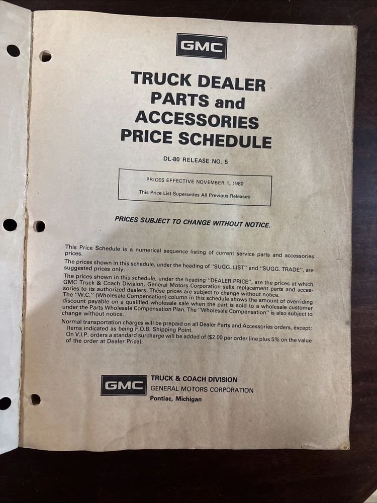 GMC Truck dealer parts and accessories price schedule effective November 1, 1989