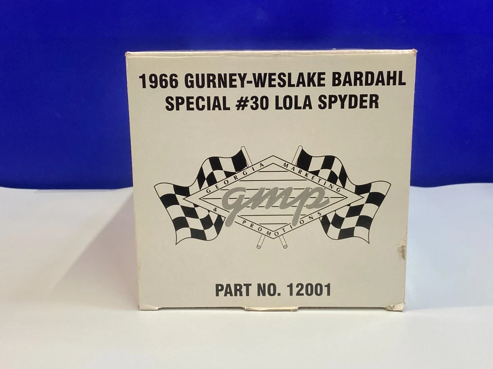 UP FOR YOUR CONSIDERATION IS A GMP 1/18 SCALE 1966 GURNEY WESLAKE BARDAHL SPECIAL #30 LOLA T70 SPYDER . ITEM IS #0144. ITEM IS NEW IN THE PACKAGE. CAR & BOX LOOK TO BE IN NICE CONDITION. ITEM WAS ONLY TAKEN OUT OF BOX FOR INSPECTION. CHECKOUT PICTURES FOR FURTHER DESCRIPTION. THE ITEM IN THE PICTURES IS THE ITEM YOU WILL RECEIVE. WILL BE PACKAGED AND SHIPPED WITH CARE. THANKS FOR LOOKING.. I PACK ALL ORDERS WITH CARE AND SHIP THEM IN A TIMELY MANNER TO ENSURE SAFE ARRIVAL OF YOUR GOODS. IF SOMETHING ARRIVES AND IS NOT TO YOUR SATISFACTION, PLEASE LET ME KNOW AND I WILL MAKE IT RIGHT. FEEDBACK WILL BE GIVEN TO BUYERS, WHEN FEEDBACK IS GIVEN TO SELLER. THANK YOU FOR YOUR BUSINESS.