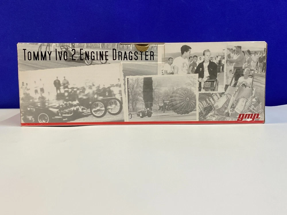 UP FOR YOUR CONSIDERATION IS A GMP 1/18 SCALE TOMMY IVO 2 ENGINE DRAGSTER W/ BONUS DVD. ITEM IS 1 OF 5000. ITEM IS NEW IN THE PACKAGE. CAR & BOX LOOK TO BE IN NICE CONDITION. ITEM WAS ONLY TAKEN OUT OF BOX FOR PICTURES. CHECKOUT PICTURES FOR FURTHER DESCRIPTION. THE ITEM IN THE PICTURES IS THE ITEM YOU WILL RECEIVE. WILL BE PACKAGED AND SHIPPED WITH CARE. THANKS FOR LOOKING.. I PACK ALL ORDERS WITH CARE AND SHIP THEM IN A TIMELY MANNER TO ENSURE SAFE ARRIVAL OF YOUR GOODS. IF SOMETHING ARRIVES AND IS NOT TO YOUR SATISFACTION, PLEASE LET ME KNOW AND I WILL MAKE IT RIGHT. FEEDBACK WILL BE GIVEN TO BUYERS, WHEN FEEDBACK IS GIVEN TO SELLER. THANK YOU FOR YOUR BUSINESS.