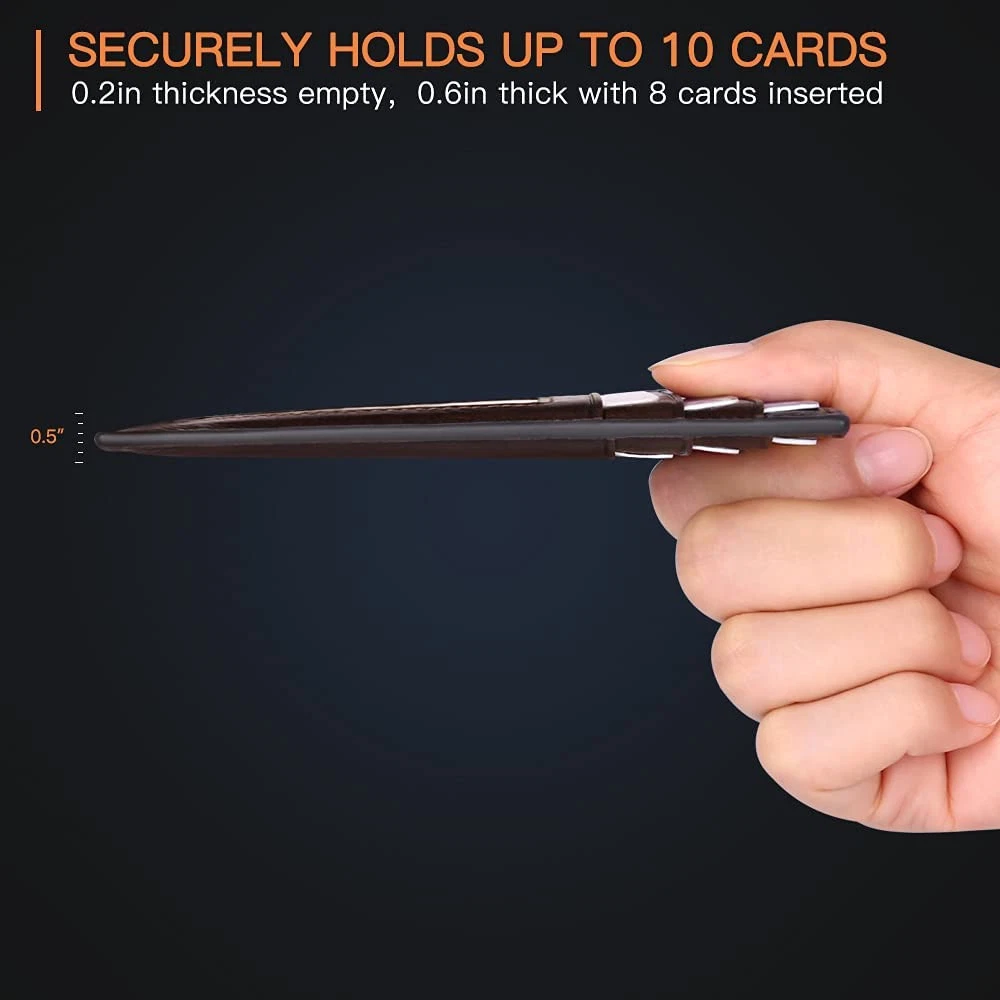 Perfect for minimalists! This slim RFID-blocking wallet keeps cards secure while looking sleek. The ID window and finger hole make accessing cards a breeze. Holds everything you need in premium leather—lightweight yet durable. Great for daily use and travel. A fantastic gift too!