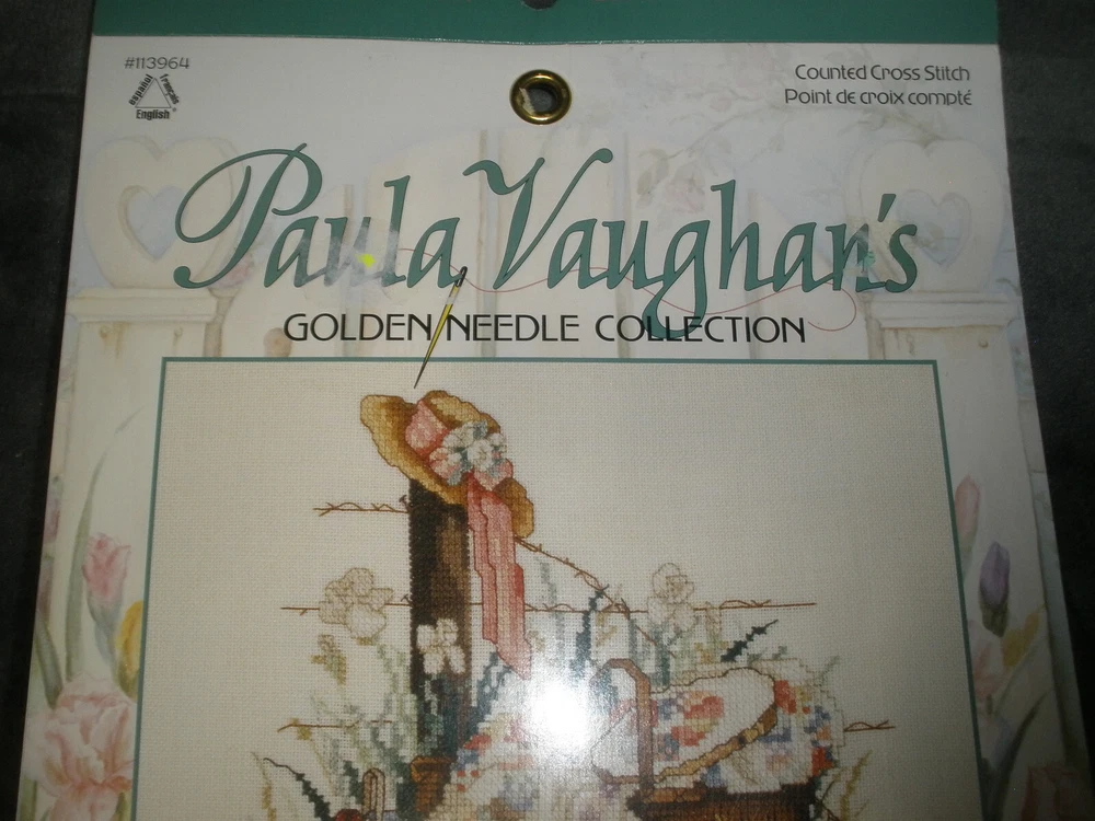 GOLDEN NEEDLE COLLECTION Cross Stitch Kit Pink Ribbon by Paula Vaughan 113964 This kit is new and sealed in package. The finished size is 6 3/8" by 6 5/8" The kit contains 32 linen fabric, instructions, Chart, needle, Certificate of Authenticity, and presorted cotton floss. This kit features a beautiful quilt draped on a picnic basket and a charming straw hat with a Pink Ribbon hanging on a fencepost If you have any questions or problems - before or after. Please message me.