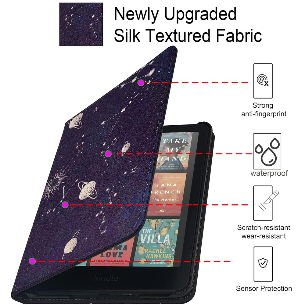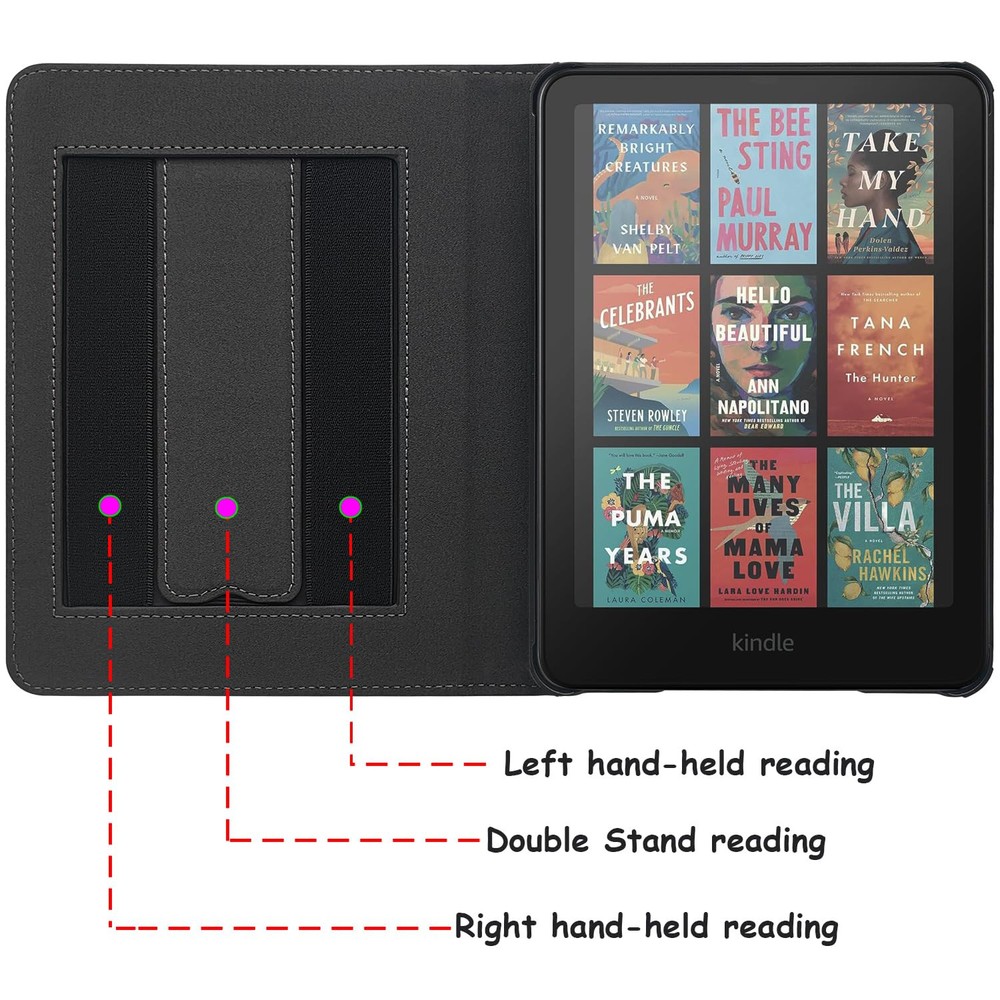 This case is a game-changer for my Kindle! The double hand straps make reading so comfortable, and the built-in stand is perfect for hands-free use. The auto sleep/wake feature works flawlessly, and the snug fit keeps my device secure. The material feels premium, and the design is sleek—definitely worth it for any Kindle owner!