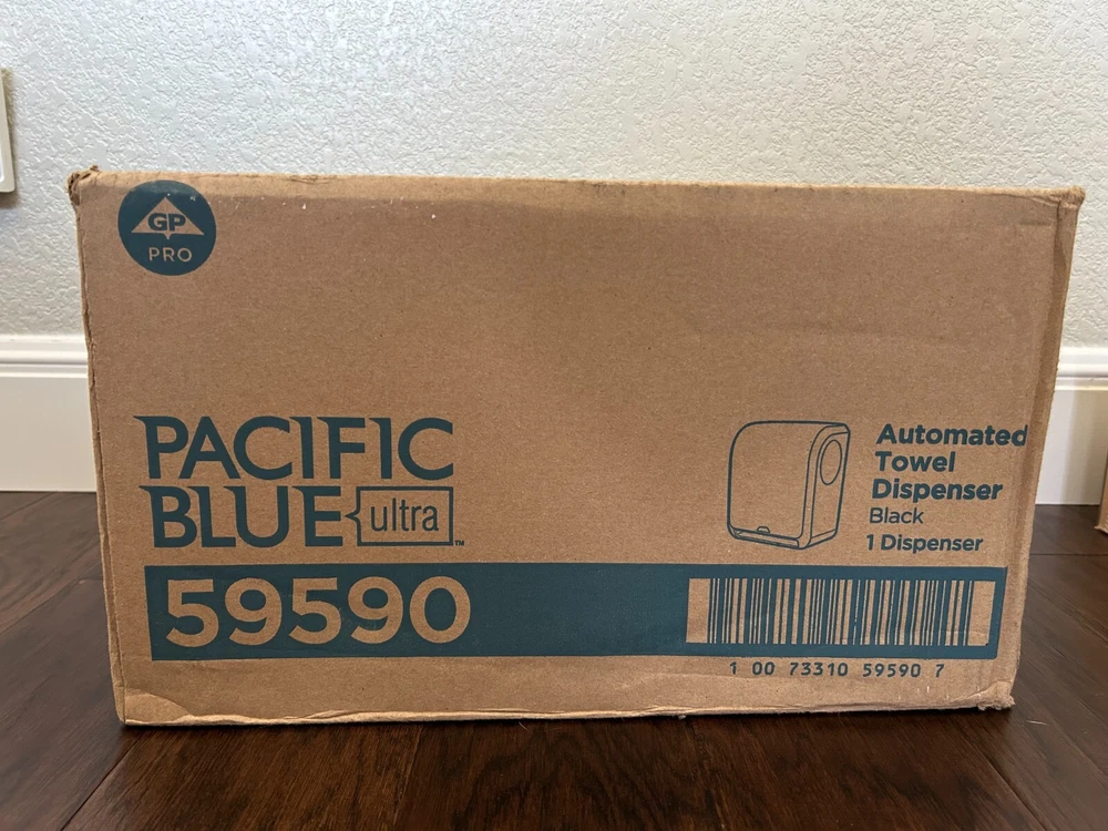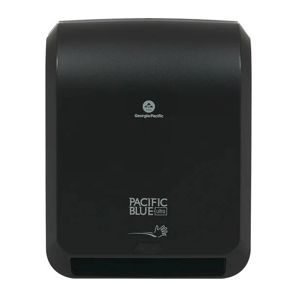 The Georgia-Pacific Pacific Blue Ultra 8" High Capacity Automated Touchless Paper Towel Dispenser is a convenient and efficient solution for dispensing paper towels in bathrooms or other facilities. This dispenser comes with 4 D batteries for operation and has a sleek black plastic design with dimensions of 16" x 12.9" x 8.9". It features touchless technology for added hygiene and has a wall mount design for easy installation.