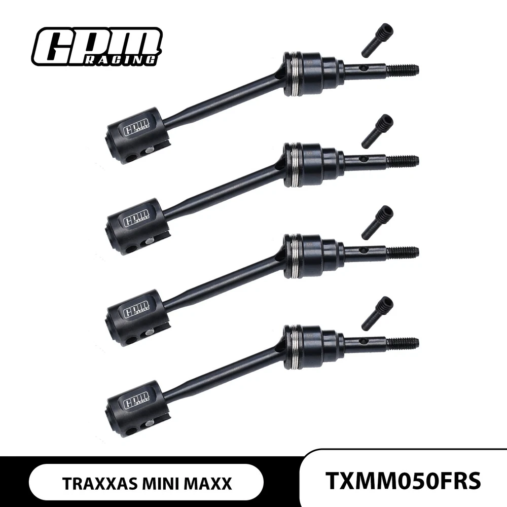 Original part No: 10750、10750X Part location: Front/Rear CVD Product major functions & usage: Leading the gears to spin and transfer the energy from the motor to achieve smooth steering performance Major advantages of upgrading to this part/product: (1) 4140 carbon steel,hardening black treatment, stronger than the original CVD Driveshafts, wear-resistance and better transmission. (2) CVD design for larger steering angle and smooth performance. (3) Length from each end of dog bone to mid-point: 50mm Package includes: driveshafts-4pcs drive cups-4pcs Set Screws M4x2.5x12.5-4pcs Suitable Model: TRAXXAS Mini Maxx Monster Truck(107154-1) Fast Delivery & No Worries after-sale : We will ship out your order ASAP. Any questions for GPM RACING please check with our highly trained team. We are here to help!