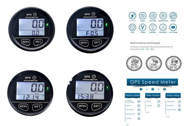 Features: • Displays GPS Speed, Odometer, Voltage, and Time • Speed units: MPH, KMH, or Nautical MPH • Max speed recall and re-settable trip meter • Adjustable high/low speed alerts with red LED flasher • Internal GPS antenna with automatic UTC sync or manual timezone setting • Speed refresh rate: 0.2 seconds • EEPROM memory for automatic data storage • Dustproof & Waterproof – IP65 rated • Ultra-low power consumption: 6 μA Multi-Voltage Compatibility: • Works with both 12V and 24V systems • Ideal for cars, motorcycles, ATVs/UTVs, boats, golf carts, and more Package Includes: • GPS Speedometer Gauge • Installation instructions • Back-lit digital display for night visibility