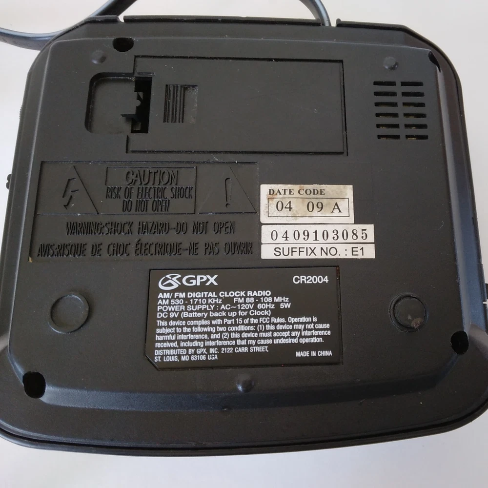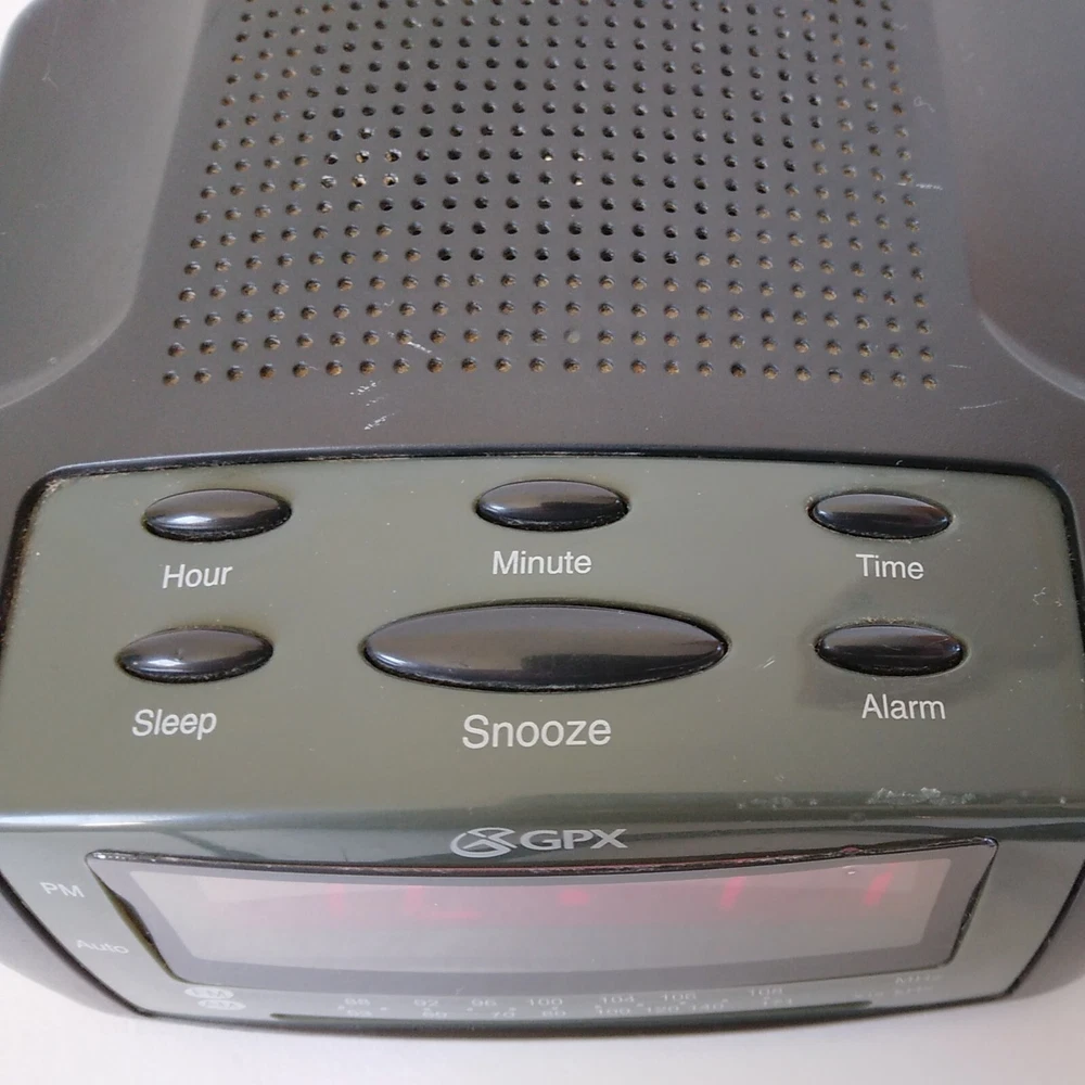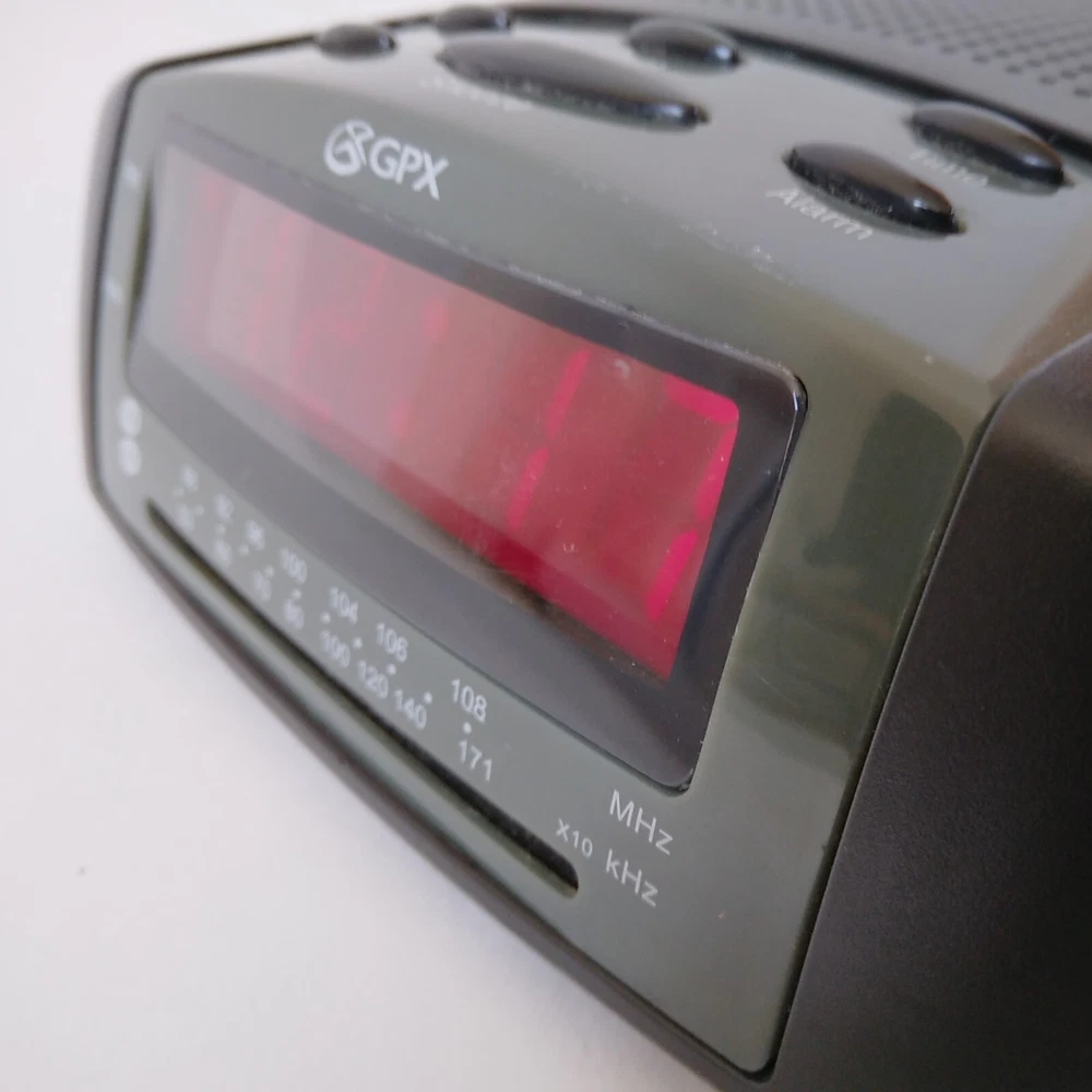 GPX CR2004 Digital Alarm Clock. This clock has been tested on all functions and works well. The alarm is a repeating loud buzz. This clock is in good cosmetic condition aside from a few small scratches and a flaw on the right of the clock face edge. See pictures for a closer look. Will ship well protected. Thanks for the interest.