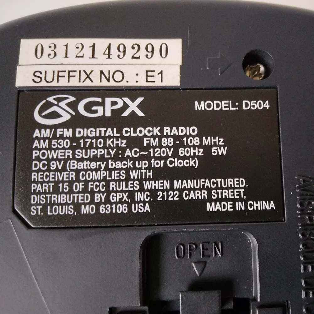 GPX D504 Digital Alarm Clock. This clock has been tested on all functions and works well. The alarm is a repeating loud buzz. This clock is in good cosmetic condition aside from a few small scratches. See pictures for a detailed look. Will ship well protected. Thanks for the interest.