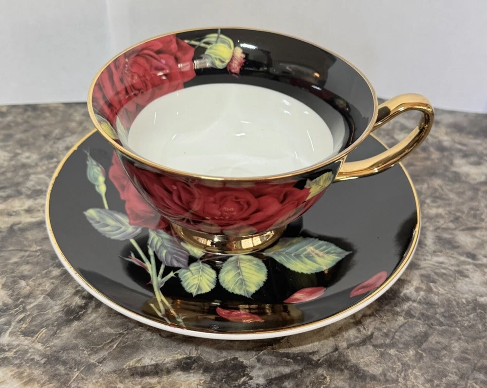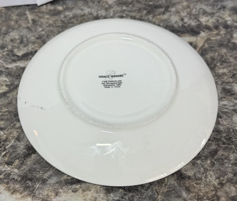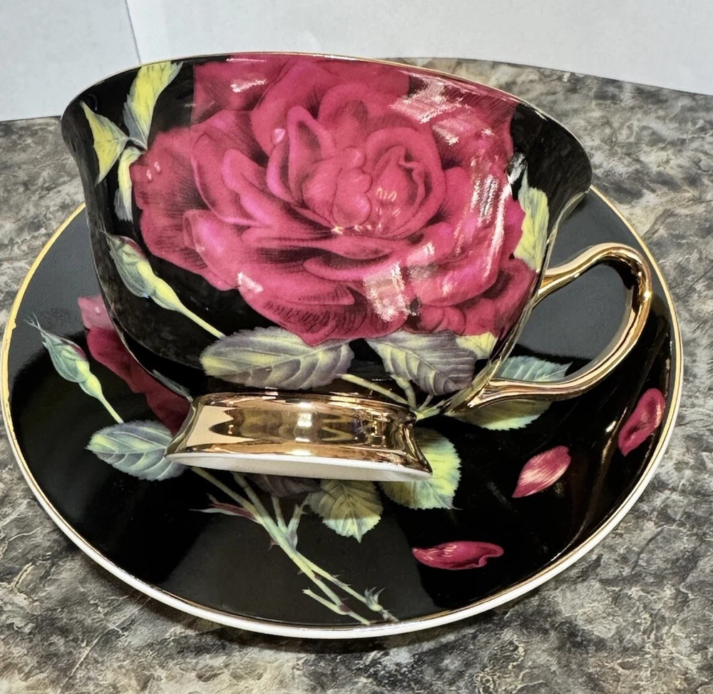 This beautiful tea cup and saucer set from Grace Teaware features a stunning of black and white with red roses with a touch of greenery. The contemporary style and fine porcelain material make it a perfect addition to any collection or a standalone statement piece. Made in China, this set includes one tea cup and one saucer and is perfect for tea lovers and collectors alike. Add a touch of elegance to your kitchen or dining room with this gorgeous Grace Teaware set. RIMMED IN GOLD TEA CUP 2 5/8" X 4 1/8" SAUCER 6" NEW NO TAGS NO STICKERS NO BOX AS PICTURED PLEASE REVIEW MY PHOTOS AS THEY ARE PART OF MY OVERALL DESCRIPTION PHOTOS ARE THE PROPERTY OF MOLLYSCORNERSTORE WE SHIP WITHIN 3 BUSINESS DAYS OF PAYMENT