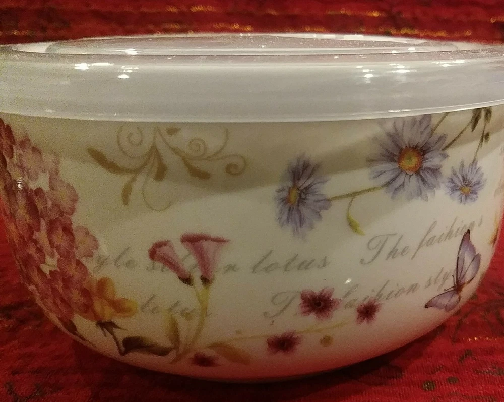 GRACE TEAWARE Hygrangia Spring Floral Butterfly Meadow Food Storage Container with Vented Lid New Microwave Safe Dishwasher Safe 5 x 3 in