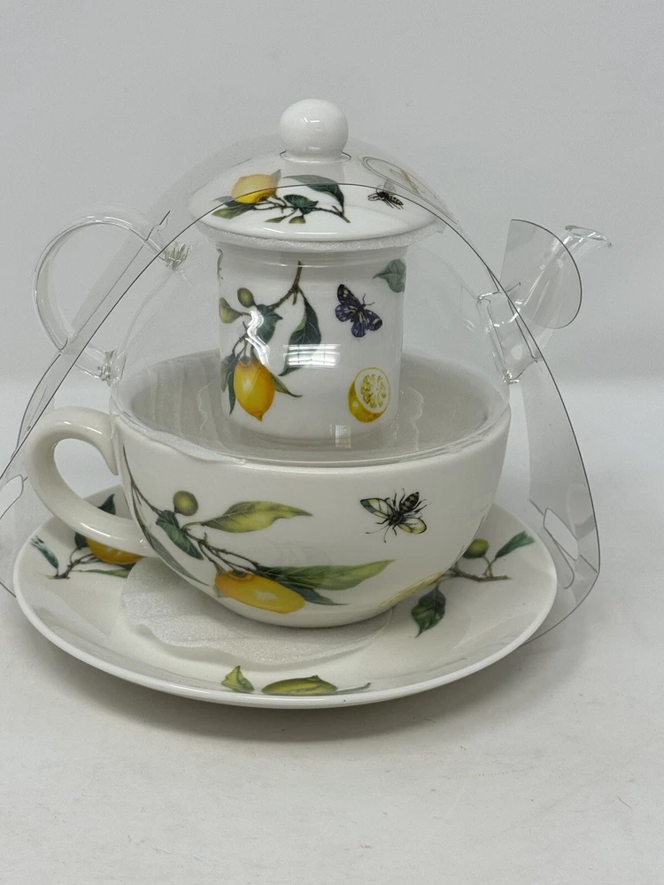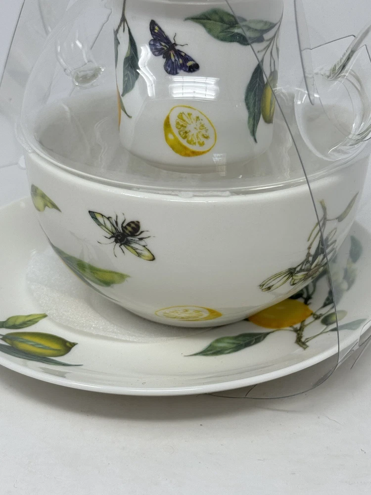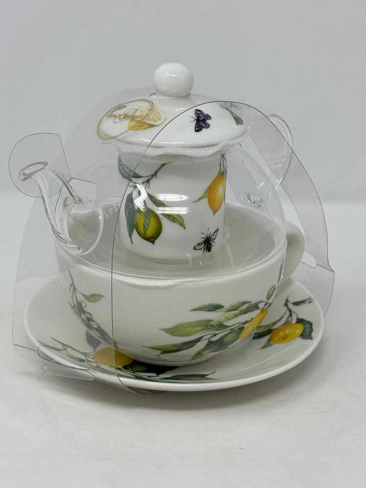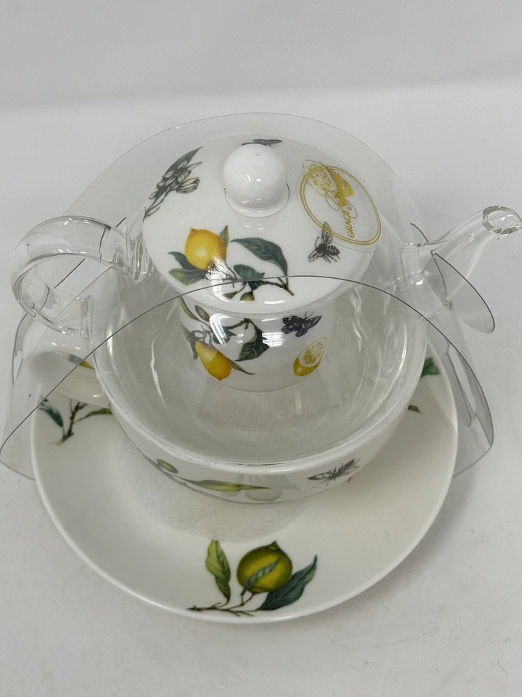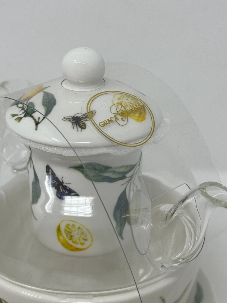 Enjoy a delightful tea experience with this beautiful five-piece tea set from Grace Teaware. The set includes a charming teapot and tea cup, both decorated with a lovely springtime theme of lemons, butterflies, and bees. Made of high-quality porcelain, this tea for one set also comes with an infuser for your loose tea leaves. The set features a stunning yellow, green, and white color scheme, perfect for all occasions. With its Art Deco style and stackable design, this tea set is not only functional but also a stylish addition to your home decor. It is microwave and dishwasher safe, making it easy to use and care for. Serve yourself or your guests with this one-of-a-kind tea set that will surely spark joy and warmth in your hearts. beautiful set for the tea lover! please follow our store for more