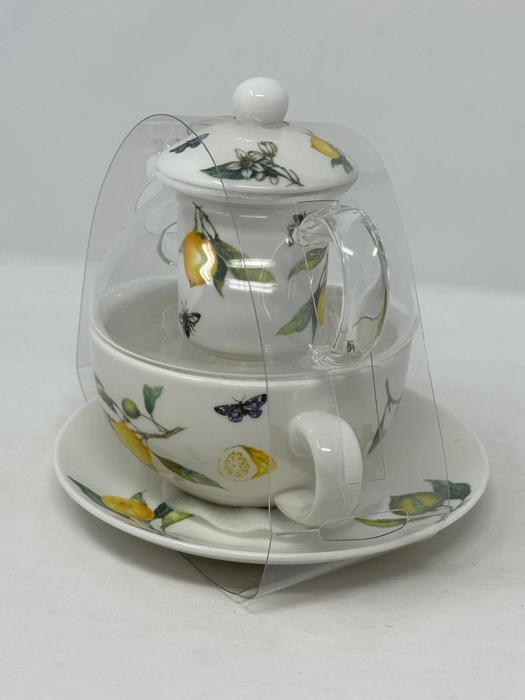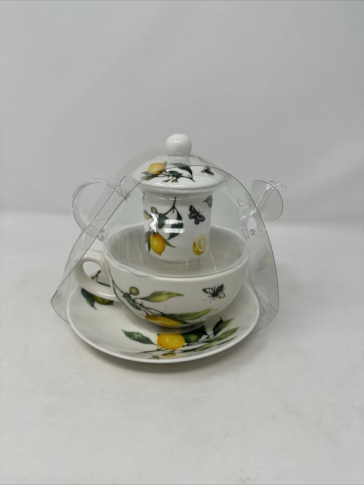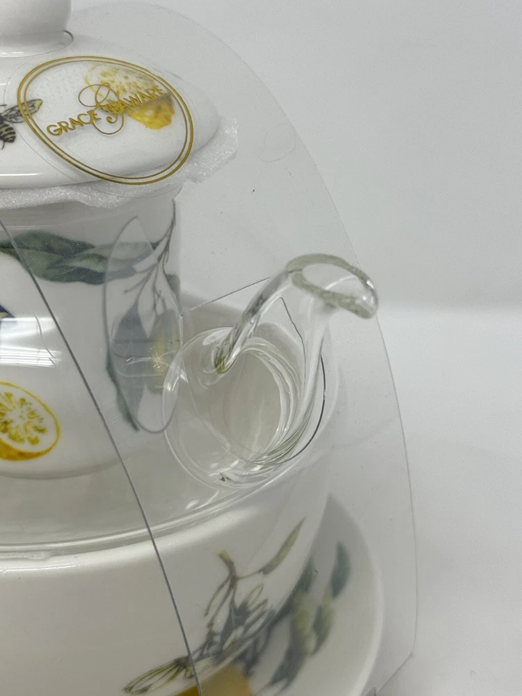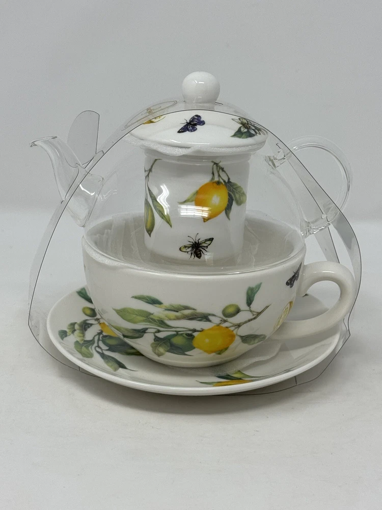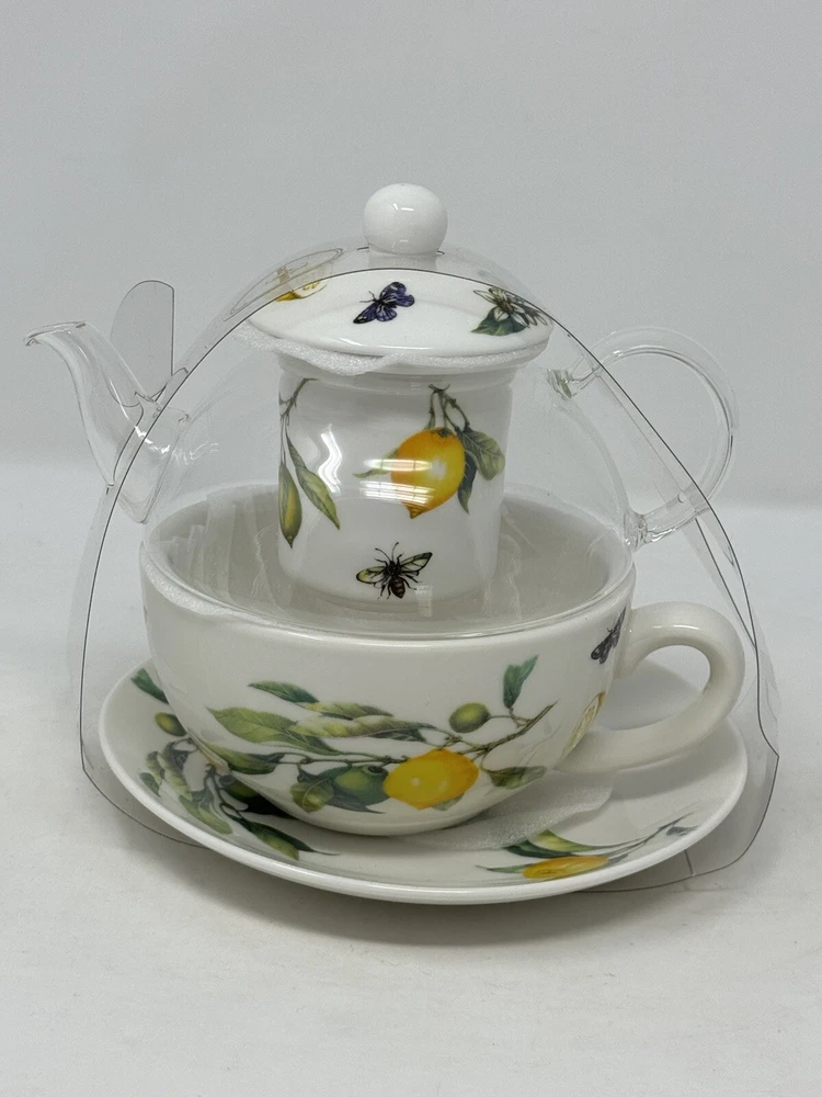 Enjoy a delightful tea experience with this beautiful five-piece tea set from Grace Teaware. The set includes a charming teapot and tea cup, both decorated with a lovely springtime theme of lemons, butterflies, and bees. Made of high-quality porcelain, this tea for one set also comes with an infuser for your loose tea leaves. The set features a stunning yellow, green, and white color scheme, perfect for all occasions. With its Art Deco style and stackable design, this tea set is not only functional but also a stylish addition to your home decor. It is microwave and dishwasher safe, making it easy to use and care for. Serve yourself or your guests with this one-of-a-kind tea set that will surely spark joy and warmth in your hearts. beautiful set for the tea lover! please follow our store for more