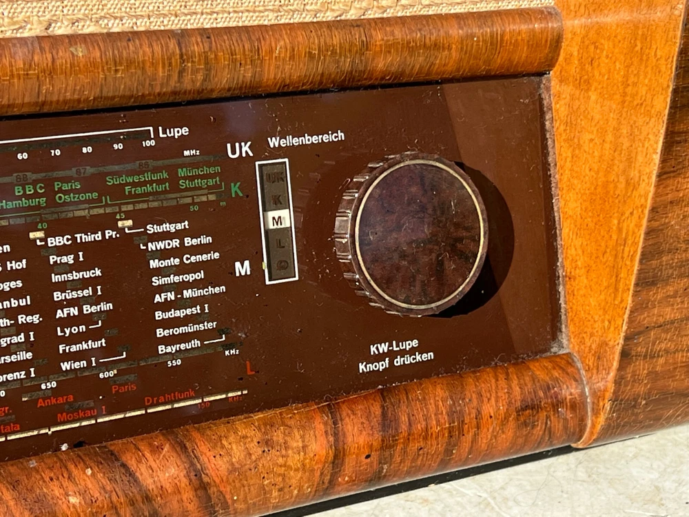 TABLE TOP RADIO QUITE NICE LOOKING CONDITION. SEEMS TO WORK JUST FINE. NICE RADIO TO ADD TO YOUR COLLECTION.