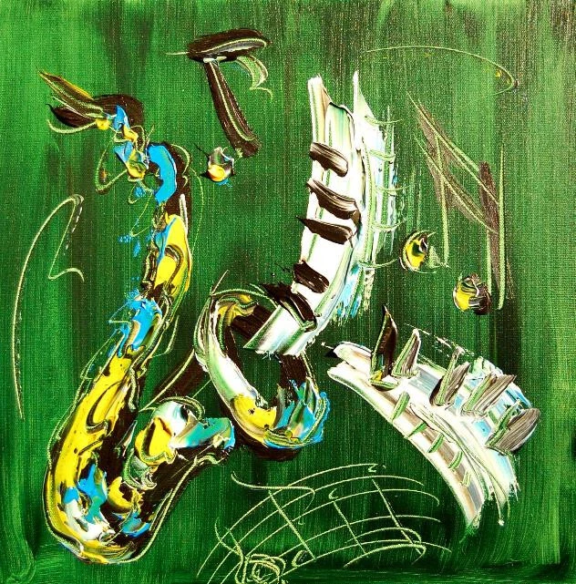 GREEN SAX JAZZ ABSTRACT ARTWORK canvas Original Oil Painting BY KAZAV