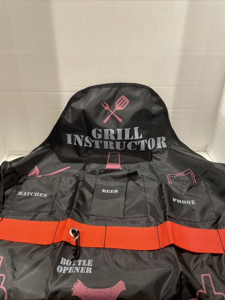 Get ready for your next barbecue with this stylish and practical Grill Instructor Apron. Made from 100% polyester, this apron features a fast-drying material that will keep you comfortable while you cook. The contemporary black and red design, with a novelty BBQ theme, is perfect for any outdoor cooking occasion. This one-size apron comes with pockets for your phone, matches, beer, and bottle opener, making it both functional and fashionable. Ideal for adults, this apron is perfect for anyone who loves to host a barbecue. Get yours today and become the host with the most!