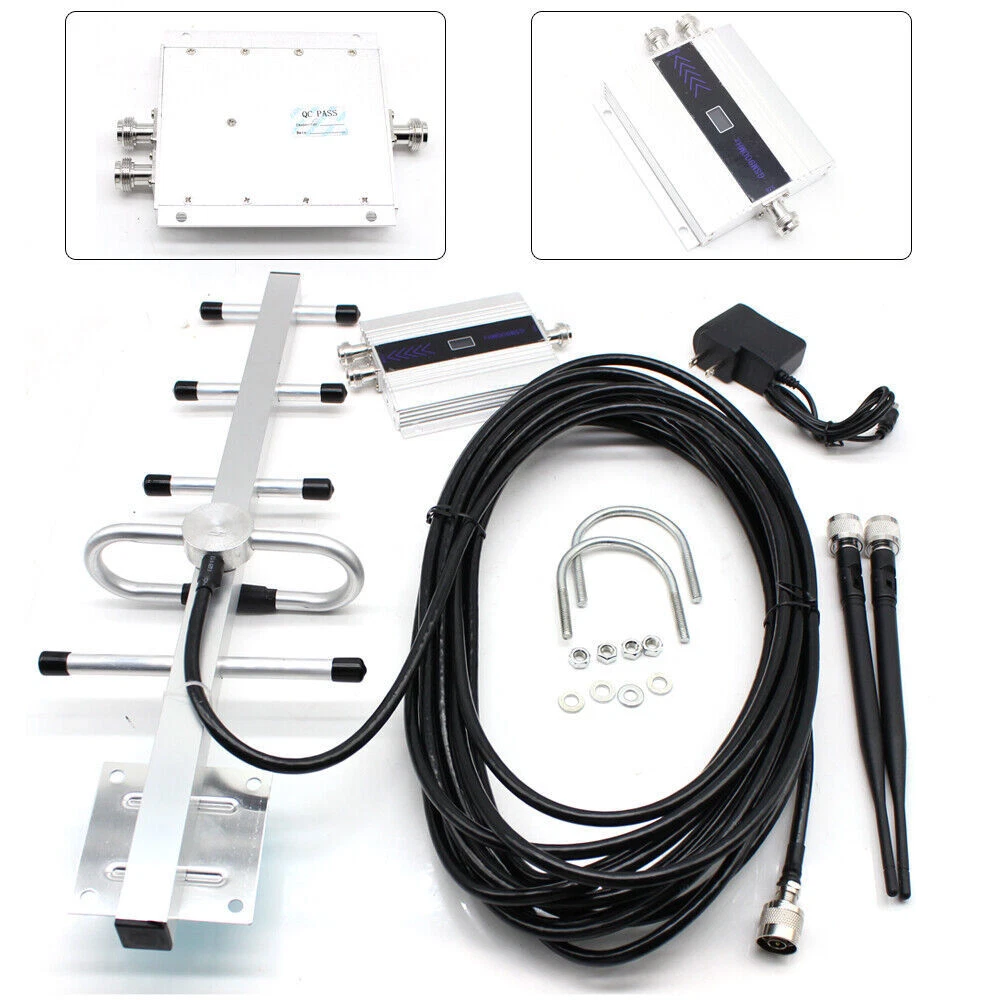 850MHZ CDMA & Yagi Antenna Kit Attention: This product is in the 850MHz band, it only supports mobile phone cards in the 850MHz band. Support 2G 3G 4G calls. Internet access only supports 3G. This antenna is not available for Verizon 4G LTE networks Before purchase, please make sure your phone network's frequency is compatible with this signal booster. Return is NOT accepted if the signal booster is not effective for your phone network. Please feel free to contact us if you need help choosing signal boosters. NOTE:The outdoor signal has to have 3 bars at least, then the unit will work indoor.Otherwise this there is no signals indoor. Specification: Brand new Frequency Range: 824-849MHz (Up Link); 869-894MHz (Down Link) Maximum gain: 60db(Up Link); 65db(Down Link) GSM/CDMA Cell Phone Signal Booster Amplifier Extender Repeater for Home Signal 850MHZ CDMA & Yagi Antenna Kit Reminder: Please test the frequency band of your mobile phone before purchasing, and then judge whether it is suitable according to the frequency band table on the detail page and the applicable frequency band of the product. Please confirm before purchasing. Attention: This product is in the 850MHz band, it only supports mobile phone cards in the 850MHz band. Support 2G 3G 4G calls. Internet access only supports 3G. This antenna is not available for Verizon 4G LTE networks Before purchase, please make sure your phone network's frequency is compatible with this signal booster. Return is NOT accepted if the signal booster is not effective for your phone network. Please feel free to contact us if you need help choosing signal boosters. NOTE:The outdoor signal has to have 3 bars at least, then the unit will work indoor.Otherwise this there is no signals indoor. Specification: Brand new Frequency Range: 824-849MHz (Up Link); 869-894MHz (Down Link) Maximum gain: 60db(Up Link); 65db(Down Link) Standard Output Power: 26dbm~29dbm(Up Link); 25dbm~27dbm(Down Link) Standard Input Power: ﹣32dbm~﹣27dbn(Up Link) ;﹣38dbm~﹣37dbn(Down Link) Noise Figure: ≤5db Repeater Coverage: 50 to 800 M² Return Loss: ≤﹣18db Input Power: AC 140V - 265V, 50/60Hz Stray Radiation: ≤﹣36dbm The repeater works with two antennas (included in the kit). One is the indoor antenna which communicates with your cell phone or laptop data card, and another one is the outdoor antenna which communicates with the cell tower When the indoor antenna receives the signal from your cell phone or data card, the booster amplifies the signal and transmits it through the cable to outdoor antenna and then to the cell tower. And the better the outside signal, the more coverage the indoor antenna can create Light weight, easy to install Mainly used in office buildings, shop-ping malls, large underground parking field, exhibition center, workshop Installation Steps 1.Install Outdoor Yagi Antenna Select an appropriate location with strong and stable signal for outdoor antenna. When installing, the outdoor antenna should be horizontal while the small vertical bar vertical to the ground. 2.Install the repeater and connect the feeder Connect the outdoor feeder with interface OUTDOOR(BTS) in repeater. 3.Install Ceiling Antenna Select a room where the signal needs to be enhanced. Install the Ceiling Antenna in a high place (higher than two meters) and towards the ground. 4.The miniature repeater is made in aluminum which could help reduce the attenuation in signal transmission and radiation. 5.The area of signal amplification is about 100-150 square meters. There is no need to worry missing phone calls or network off-line. Package Included: 1pc x 850MHz Repeater 1pc x Outdoor Yagi Antenna with 10m Cable 1pc x Ceiling Antenna with 3m Cable 1pc x Charger 1pc x User Manual ................................................................................................................................................................................................................................. GSM 900MHz & Yagi Antenna Kit The Signal Repeater Call support 2G / 3G / 4G ,the network can only support 2G Features: High gain, easy installation and operation. Full-duplex, Dual-port design. Use ALC technology, adjust extent automatically. LED Light Working & Signal Condition Indicators. Big linear power, control intermodulation & scatteration stably. Dependability stand by GB6993-86 standard. Compatibility of electromagnetism according with ETS300 609-4. CE and RoHs Approved. Specification: Frequency range : 890MHz--915MHz(Up link);935MHz--960MHz(Down link) Power: -70 ~-40 dBm/ FA (1.23MHz) Gain : (Up link) 50/55/60/65Db/±10DB (Down link) 55/60/65/70Db±10DB Signal coverage : Up to cover for 150 square meters use Impedance : 50Ω Seclusion : >65dB Power supply : 110V Output Voltage: 5V Compact design: Indoor use Signal Repeater Size: 140*100*20mm/5.51*3.94*0.79" Installation Steps 1.Install Outdoor Yagi Antenna Select an appropriate location with strong and stable signal for outdoor antenna. When installing, the outdoor antenna should be horizontal while the small vertical bar vertical to the ground. 2.Install the repeater and connect the feeder Connect the outdoor feeder with interface OUTDOOR(BTS) in repeater. 3.Install Ceiling Antenna Select a room where the signal needs to be enhanced. Install the Ceiling Antenna in a high place (higher than two meters) and towards the ground. 4.The miniature repeater is made in aluminum which could help reduce the attenuation in signal transmission and radiation. 5.The area of signal amplification is about 100-150 square meters. There is no need to worry missing phone calls or network off-line. Installation Approaches 1. Fix up outdoor antenna reception on housetop and point to signal tower. 2. Connect outdoor antenna to "BTS" port in repeater machine through cable. 3. Connect indoor antenna(s) to "MOBILE" port in repeater machine through cable also. 4. Plug power adaptor into AC power socket and finish installation. Installation note: 1. 