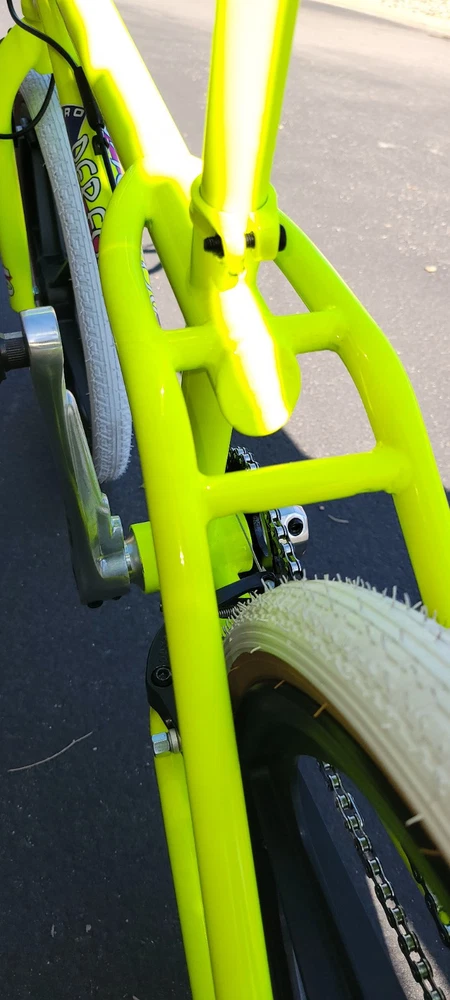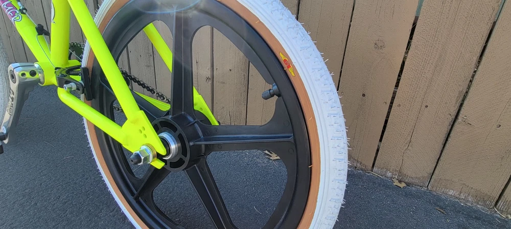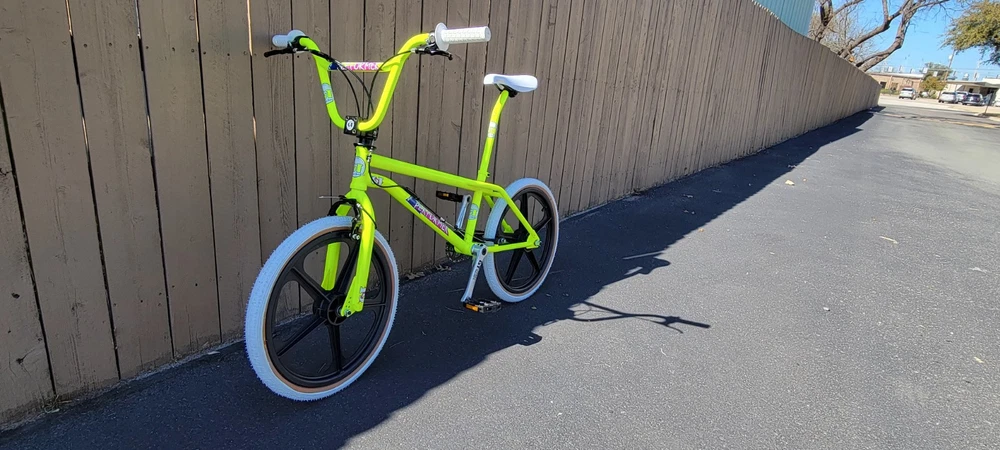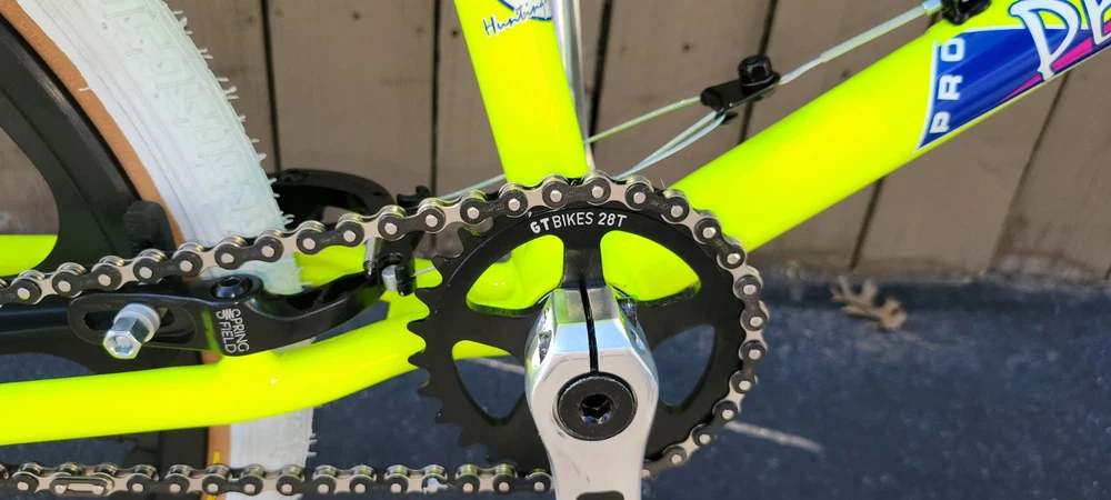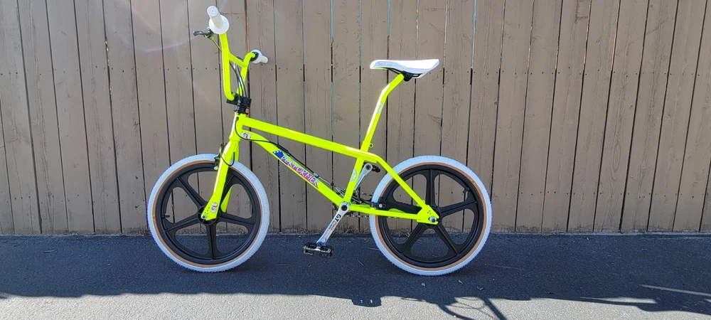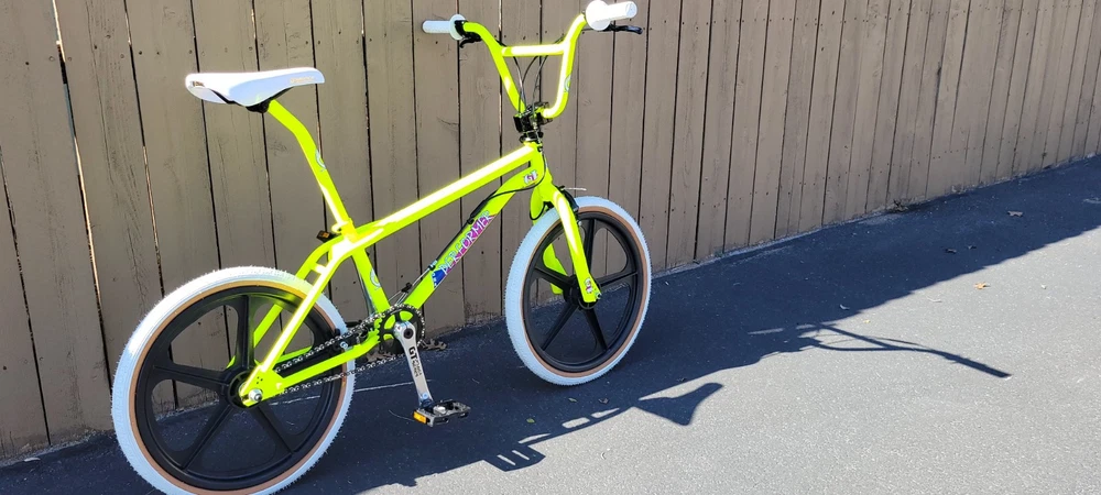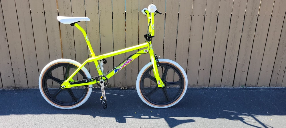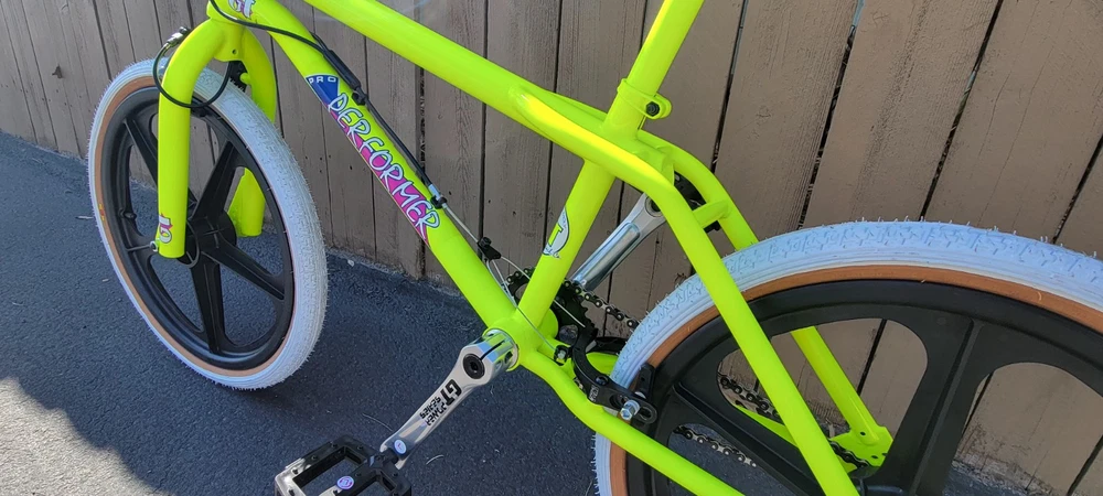 Wassup guys! I’ve decided to let another one of my beautiful 2024 heritage performers go. This is another carpet queen and was also kept in my man cave, only ridden once to test out after it was built. It has Skyway wheels and factory 28 tooth chaining and the AME grips and Izumi chain and Tech 77s. Last but not least it was powdered by Ernie's BMX shop and they did a beautiful job you can also check them out on Instagram if you want to see their other work. If you have any questions, please don’t hesitate to message me. Bike will be shipped in a bike box (no og box) via bikeflights. Thank you!!! *Comes with everything pictured *Seat post has thick powder, doesn't go in too deep *OEM seat post (never used) included but it's scratched up from store display but can be re-powdered. Frame GT 86' Pro Performer, 100% Cr-Mo, DT Gusset, Mid BB , Chain Stay Mounted U-Brake, Integrated 1-1/8" H/T w/ Removable Rotor Tabs Sizes Available O/S Fork GT 86' Pro Performer, 100% Cr-Mo, 1pc. Threaded Steerer, Tapered Legs, 31mm Offset, Brake Mounts Wheel Size20 Skyway Tuffs Rims Skyway Tuffs 9TCassette Front Tire GT 20x1.75 Rear Tire GT 20x1.75 Spokes Stainless Steel, 14g Rear Cogs 16T Freewheel Chain Izumi Black Silver Wide Crank GT Power Series Alloy 3pc., 175mm Arms, 22mm Chromoly Spindle, GT NBS 28T Alloy Chainwheel Bottom Bracket Sealed Mid 22mm Pedals GT Logo PC Platform Handlebar GT 2pc Performer, 100% Cr-Mo, 9.125"H x 29"W, 5°Up, 9° Back Stem GT Mallet Front Load 43mm, 100% CNC, 19mm Rise Grips AmE Mushrooms Headset 1-1/8" Sealed Integrated (41.8 x 45) Seat post Black OPs Powdered, 25.4 Brakes SST ORYG Detangler, Alloy U-Brake (F/R) Brake Levers Tech 77