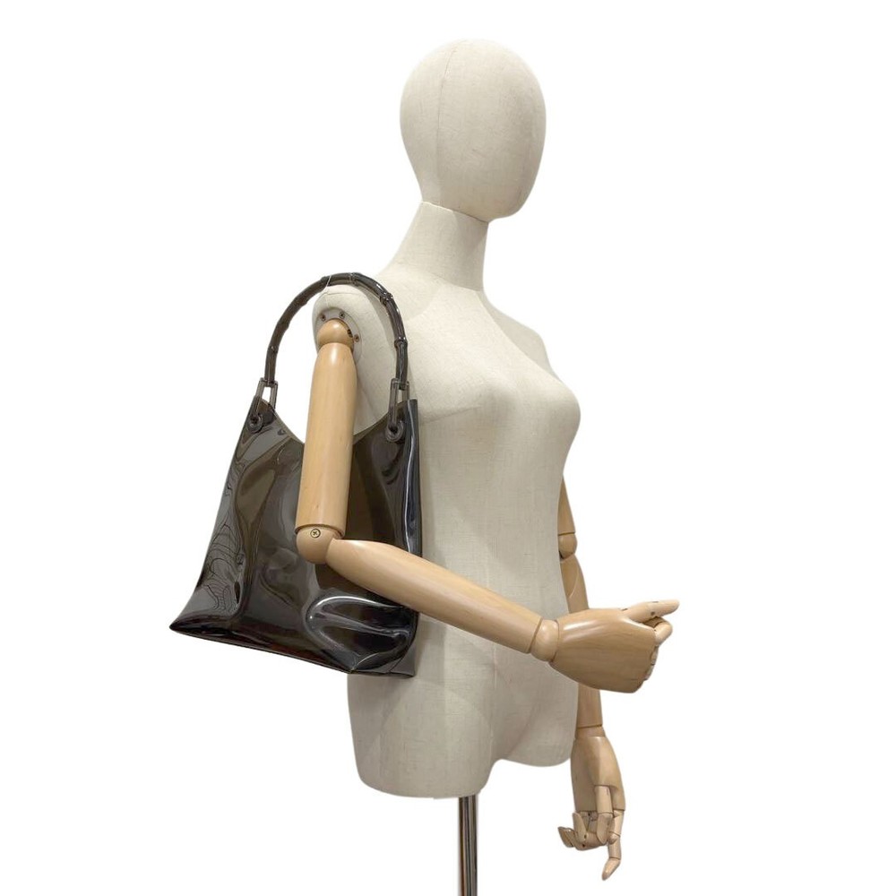 $ 159.26GUCCI GG Crystal Hand Bag Dark 223962 PVC Leather Boston 992737