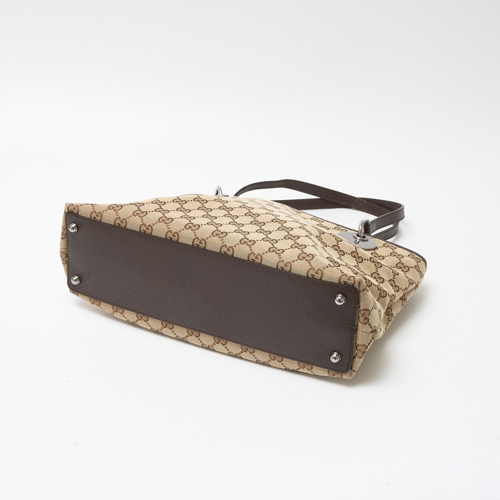 GUCCI GG Canvas Compact Tote Shoulder Bag in Leather 2-Way Design 113015 475453