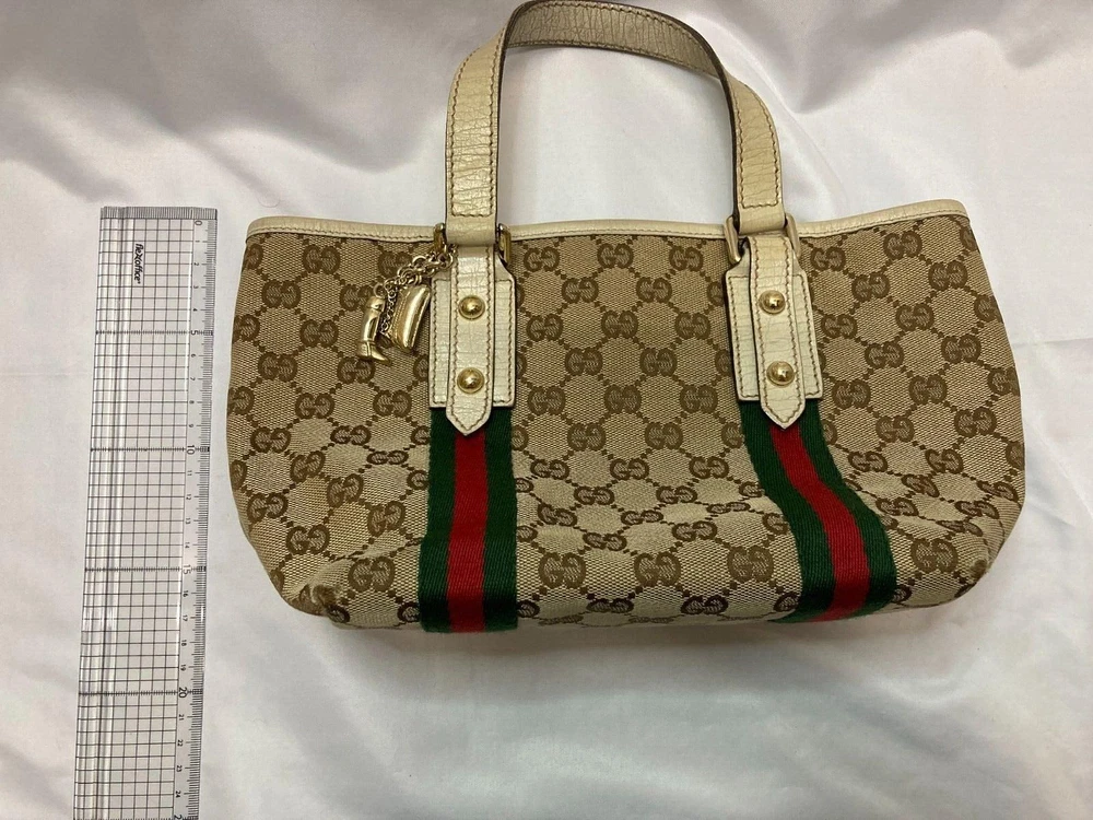 GUCCI GG Canvas Hand Bag w/ charm USED D224-2 Expedited shipping(Fedex) With tracking number Shipping from Japan Add to Watchlist!! Subscribe to your Watch list to receive exclusive offers from us. Item Description Size Approx. 17cm x 33cm This item has been professionally appraised. This item is a used item with signs of use. There may be scratches, stains, tears, or frayed areas, so please check the photos carefully. Shipping Expedited Shipping We will ship using FedEx. We usually ship within 3 - 5 business days of receiving cleared payment. All deliveries have a tracking number. For areas where FedEx delivery is difficult or special fees are required, we will ship via EMS or other alternative shipping companies. Payment Please update your eBay confirmed shipping address before purchasing an order,as we can not change it after shipment. As for the re-shipment, buyer necessary to pay an additional charge. Packing We carefully pack and ship from our professional shipping team in Tokyo. Additional items ship at $1.50 each, and the maximum shipping charge for a single order is automatically capped at $50 at checkout - no need to contact us beforehand. We will dispatch your order as soon as your items are packed and ready. Gift wrapping is unfortunately not accepted at this time. Items that have been on sale for more than a certain amount of time or prize items may have age-related deterioration, small scratches, or stains on the outer box. International Buyers - Please Note Import duties, taxes and charges are not included in the item price or shipping charges. These charges are the buyer's responsibility. Please check with your country's customs office to determine what these additional costs will be prior to bidding/buying. These charges are normally collected by the delivering freight (shipping)company or when you pick the item up - do not confuse them for additional shipping charges. We do not mark merchandise values below value or mark items as "gifts" - US and International government regulations prohibit such behavior. About Us Thank you for taking a look at our items! We are a start-up company in Tokyo. We bring Japanese charm and items to people all over the world! If you are looking for Japanese items, please let us know and we will be happy to help you in any way we can! Here are some of our other items for sale. Please take a look at the feedback we have received from our customers! Add to Watchlist!! Subscribe to your Watch list to receive exclusive offers from us.