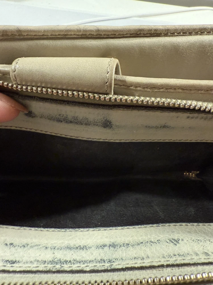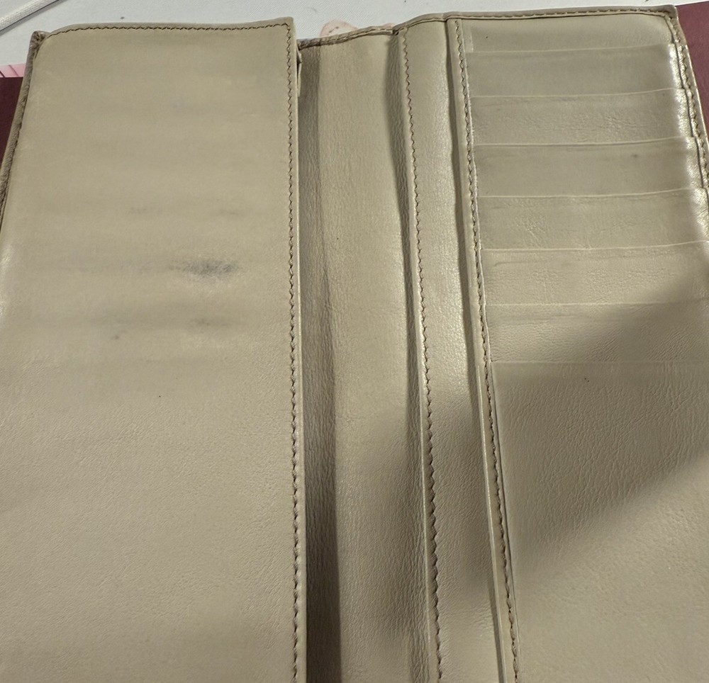 Gorgeous pre-loved authentic GUCCI long leather wallet. Good condition-no rips, tears nor smells. Just a little dirty. Could use a cleaning and conditioning. Measures approximately 7.5”w x 4” h Smoke free home