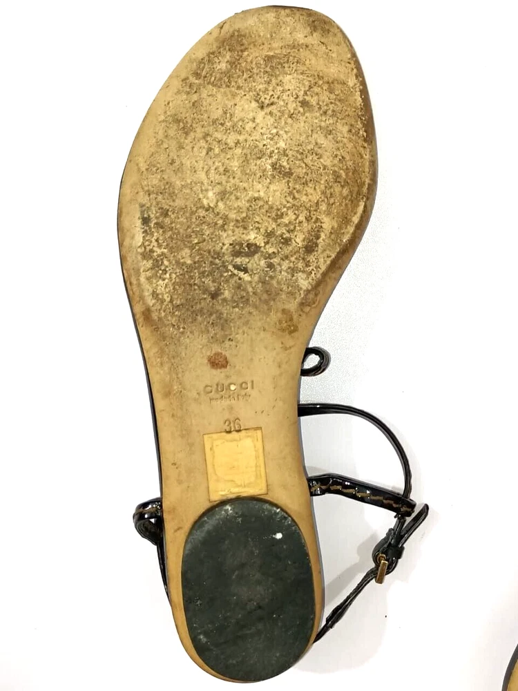 GUCCI THONG FLAT PATENT LEATHER SANDAL SIZE, EU36, US6, is in pre-owned but condition is Good, > INNER MINOR SIGN OF USE, > DOWN THE SOLE USED MARKS, > OVERALL CONDITION IS GOOD IN PRE-OWNED, > SEE ALL LISTING PICUTURES VERY CAREFULLY CLEARLY CONDITION IS SHOWING IN ALL PICTURES, > IF HAVE ANY QUESTIONS RELATED ITEM THEN FREELY MESSAGE ME IN INBOX FOR ASKING ANYTHING, > NO RETURN IS ACCEPTABLE, > NO DUST BAG AND BOX WITH THE ITEM, > SHIPPED BY DHL INTERNATIONAL EXPRESS FASTER SERVICE,
