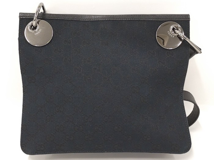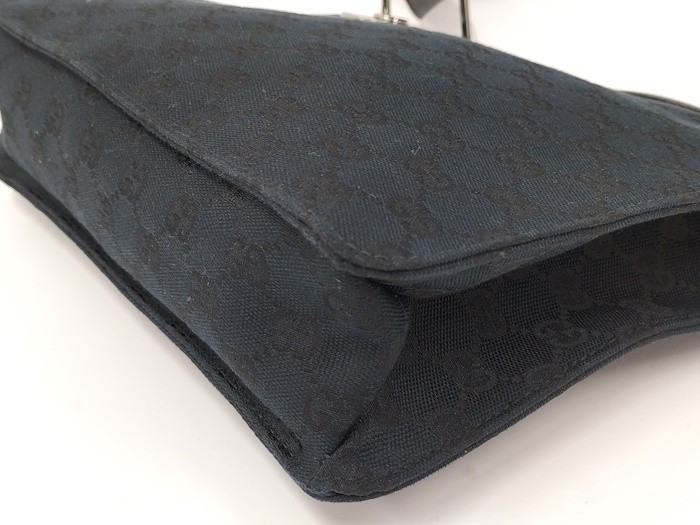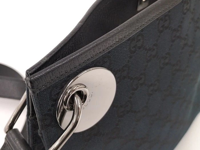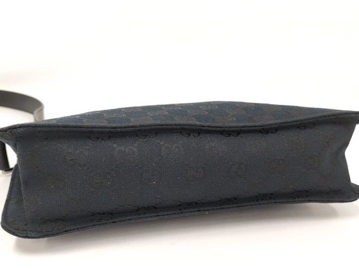 $ 266.22GUCCI GG Canvas Shoulder Bag in Black Leather with Gold Hardware 450255
