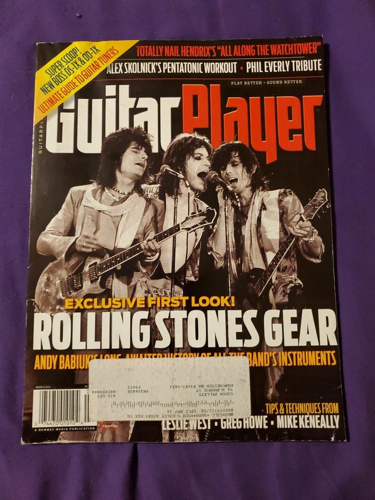 Guitar Player March 2014 Vol 48 Number 3 Rolling Stones Jimi Hendrix Alex Skolnick Phil Everly Andy Babiuk The Madeira Swamphammer Greg Howe Leslie West Rory Hoffman Mike Keneally Jim Oblon Barney Kessel Gary Brawer Carl Verheyen Craig Anderton Gibson Gil Yaron Bone Tone King Albion Boss iZotope Visual Sound Red Witch Michael Lee Firkins