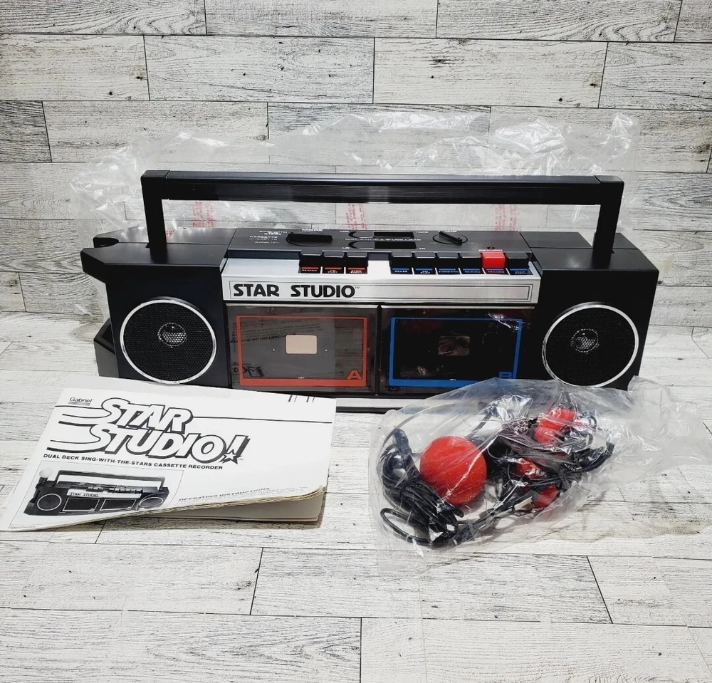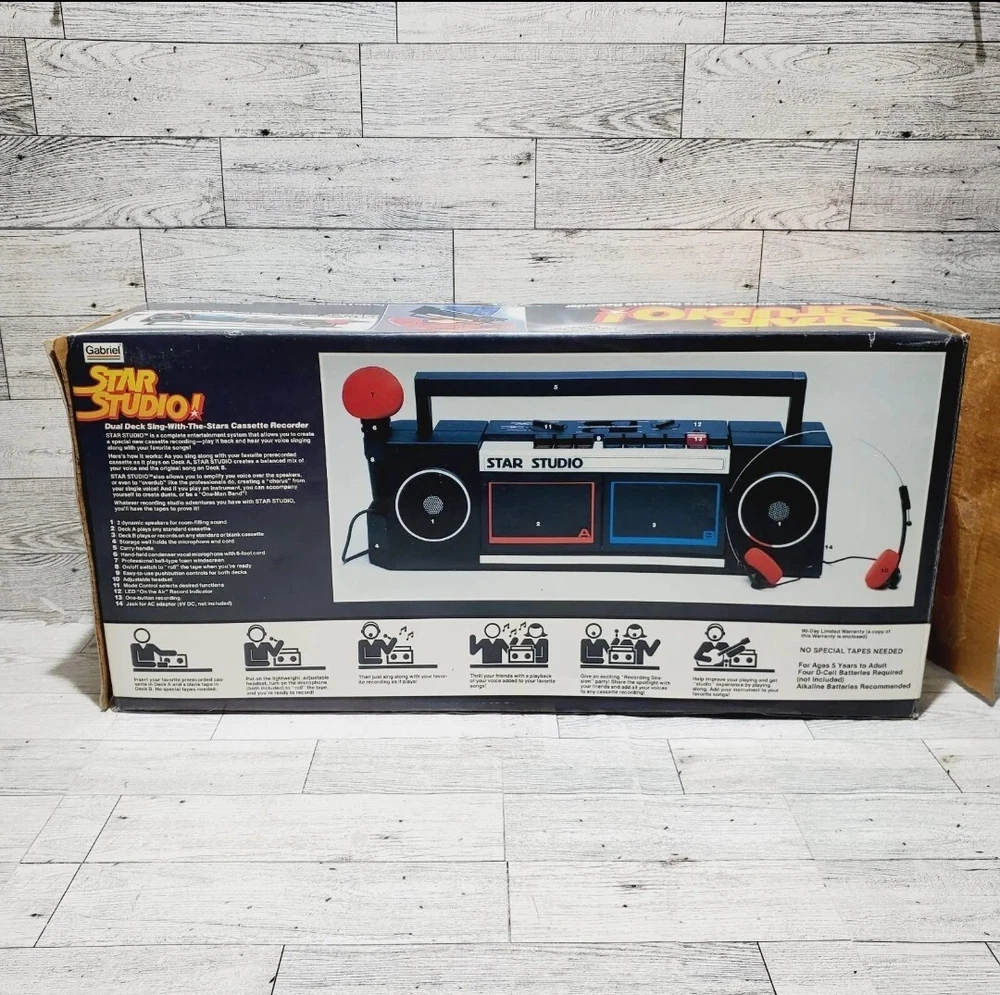 The Gabriel STAR STUDIO Dual Cassette Deck Recorder is a vintage electronic device that allows for recording and playback of audio on cassette tapes. This does not come with a microphone or headset, indicating that external accessories would need to be connected for recording and listening purposes. The brand Gabriel is known for producing consumer electronics, particularly in the vintage audio and video category, making this cassette deck a nostalgic piece for audiophiles or collectors of vintage electronics.