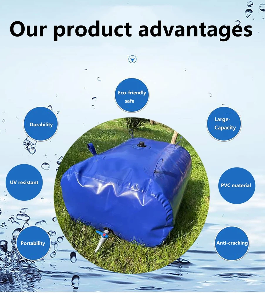 Features: 100% brand new Material: Soft PVC material Color: Blue Capacity: 400 L / 105 Gallon Shape: Rectangle Valve: Included Item Weight: 7 lbs Item Dimension After Folding: 13 X 11 X 7 inch Package included: 1 X 100 gallon Plastic Portable Water Bob for Bathtub Storage Bladder 1 X Water on/off outlet valve and extension water pipe 1 X Water inlet Lid POWERFUL FUNCTION: This water storage container can fit for non fixed water storage facilities and solve practical problems in case of water resources emergency. It can be a cost effective solution for gardening, outdoor rainwater bag and drought-resistant, fire-fighting, agricultural, construction watering. FOLDABLE AND LIGHT: Capacity 400L / 105gal. This water bag can be folded and rolled up when not in use, offering a perfect solution for transporting and storing non-potable water. After folding, the bag dimension is 13*11*7 inch and the weight is 7 pounds. SUPER EASY TO USE: This bag is designed with lightweight and foldable material and 4 portable pull rings, which is easy to carry and store. When transporting to other place, put it on the vehicle in advance, and then fill the bag with water by taking off the black lid. Simply turn on the water outlet valve when you need to use the water. PREMIUM QUALITY: Made of quality soft PVC material which is lightweight, collapsible, anti-cracking, and UV resistant to provide portability, durability and long service life. This material is also eco-friendly safe, non-toxic and odorless. ATTENTION: This water storage bag maintains water quality for no more than 7 days. Please keep the inside of the water tank clean and wash it every 15 days. After filled with water, please keep the bag away from sharp objects to avoid damage.